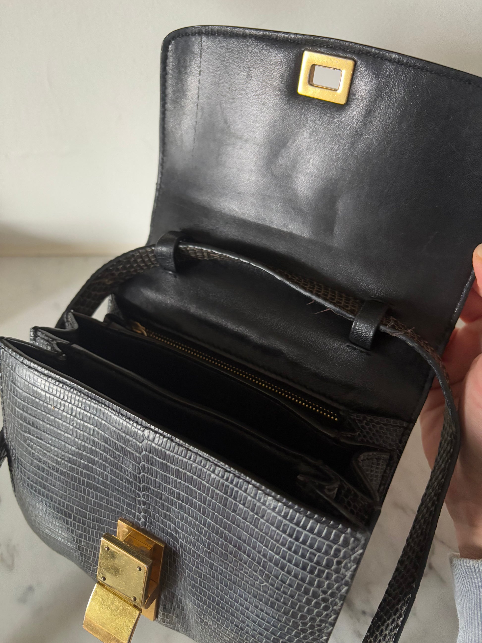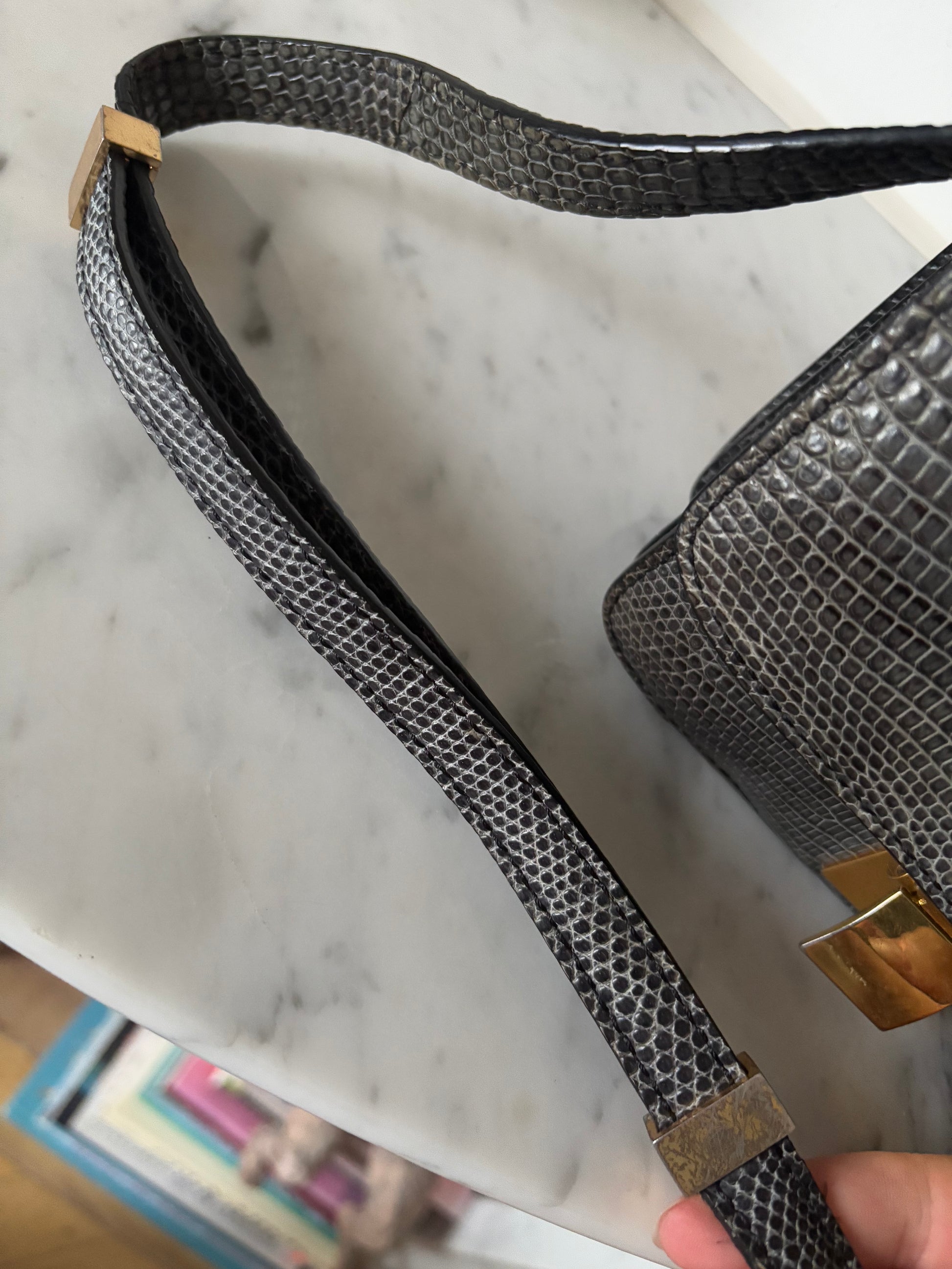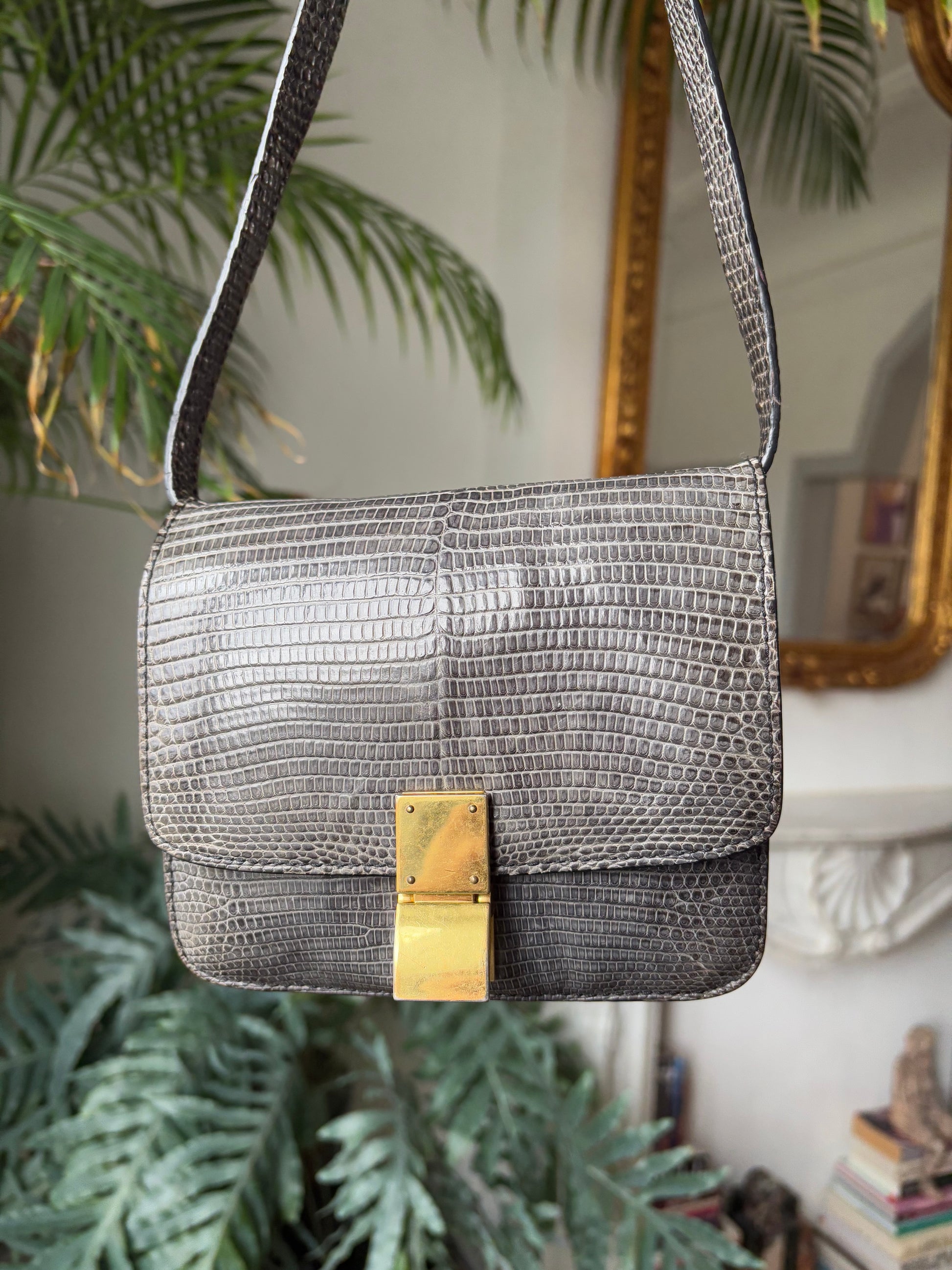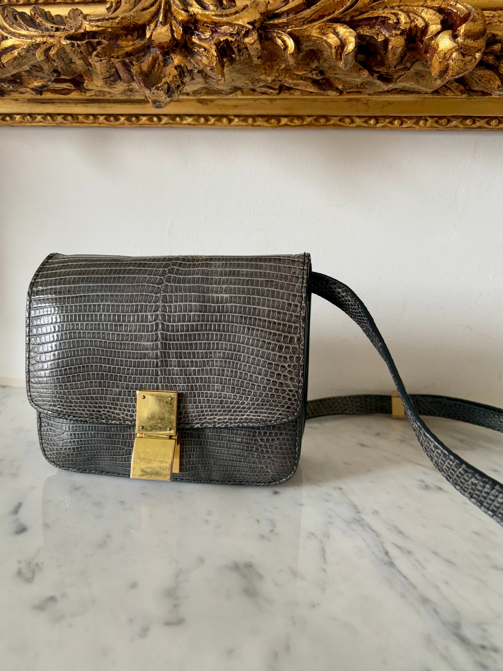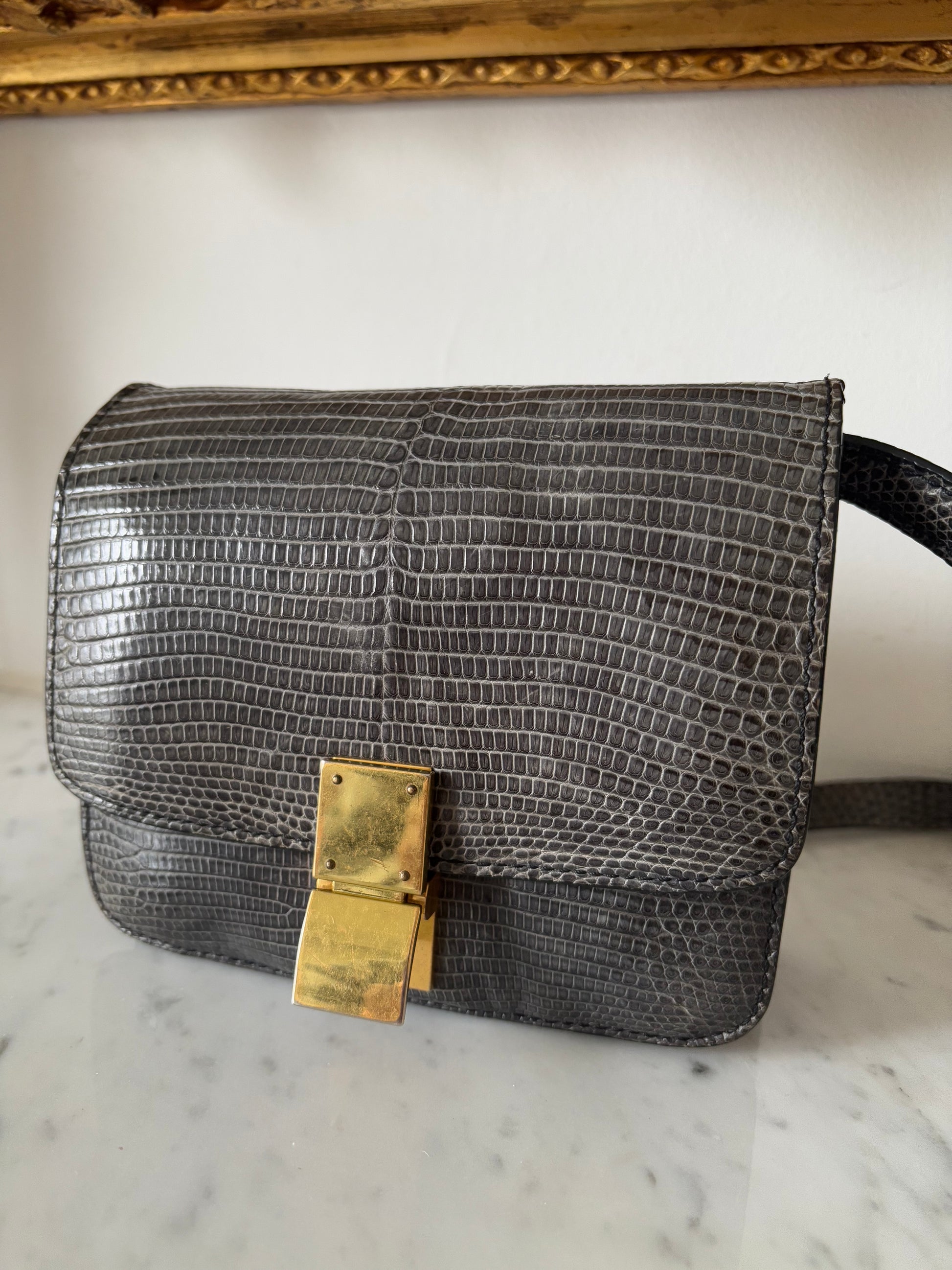 This bag exudes understated luxury and class! The classic Box bag by Celine is so timeless, and the grey lizard leather makes this a rare piece.