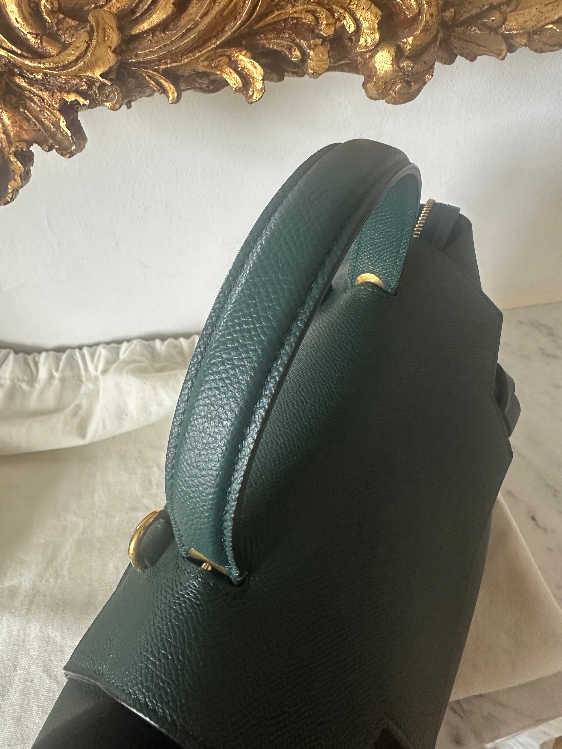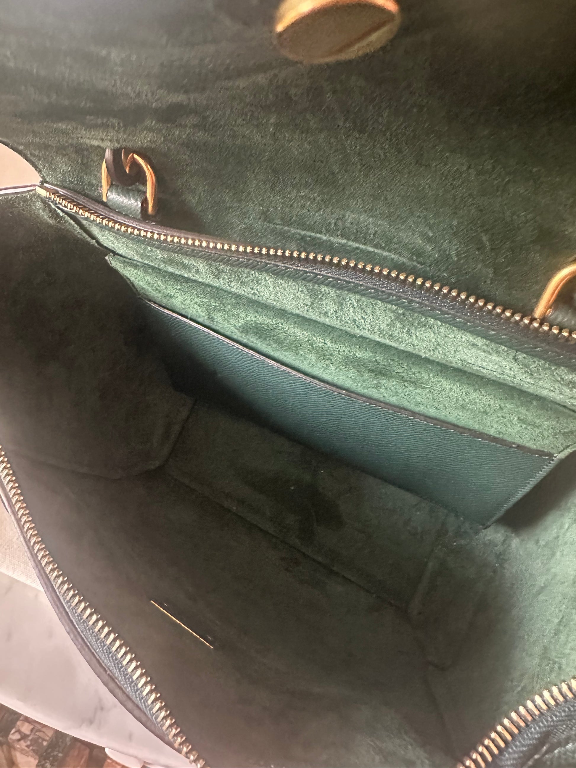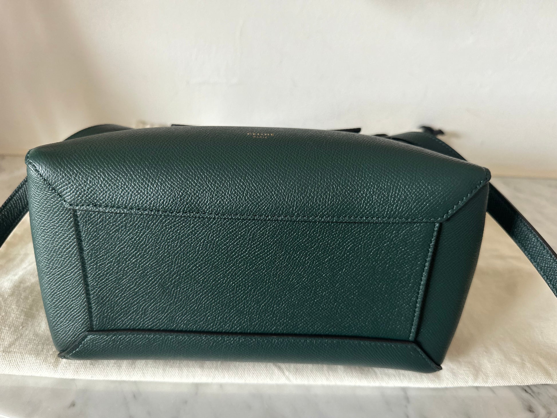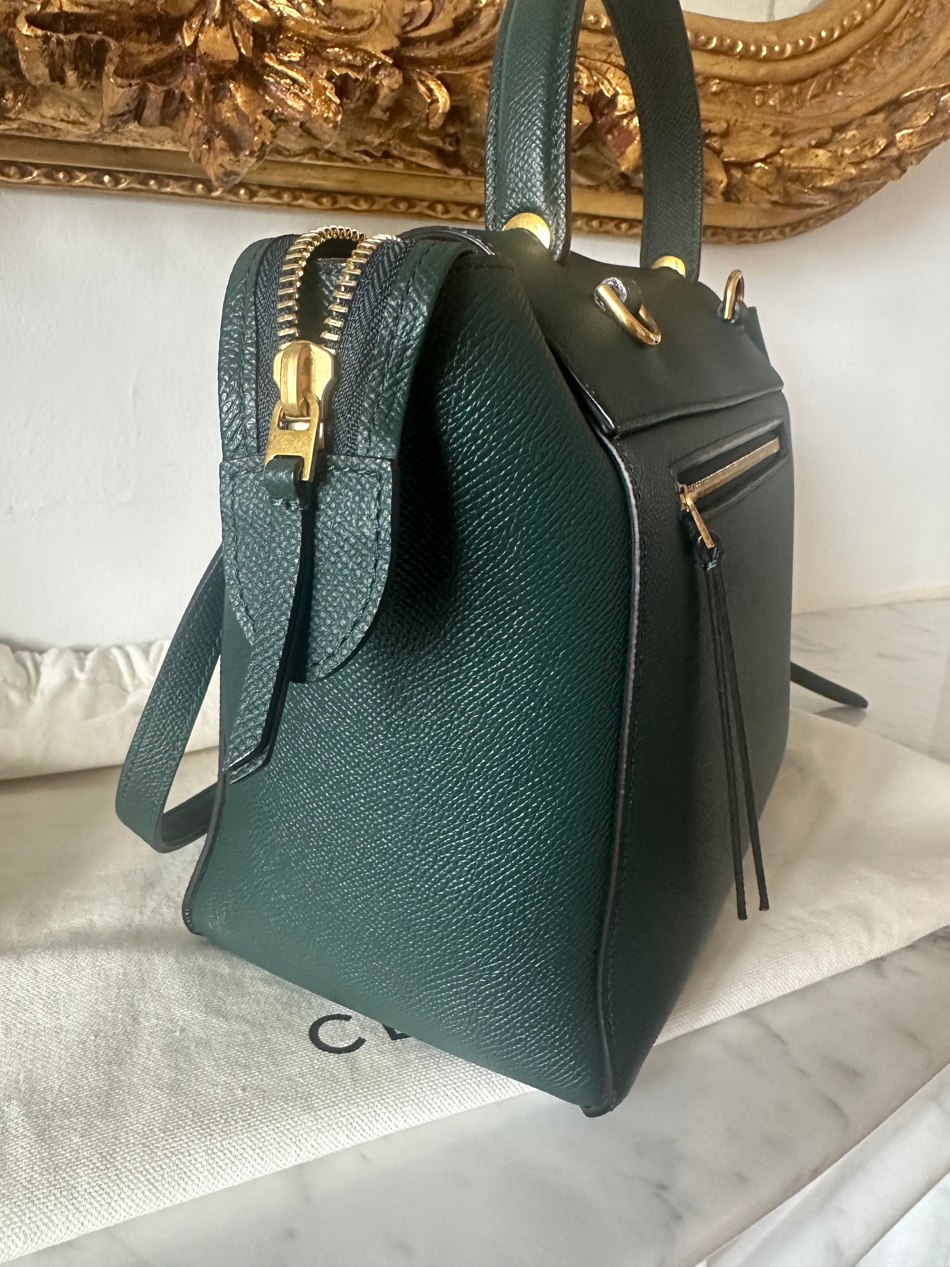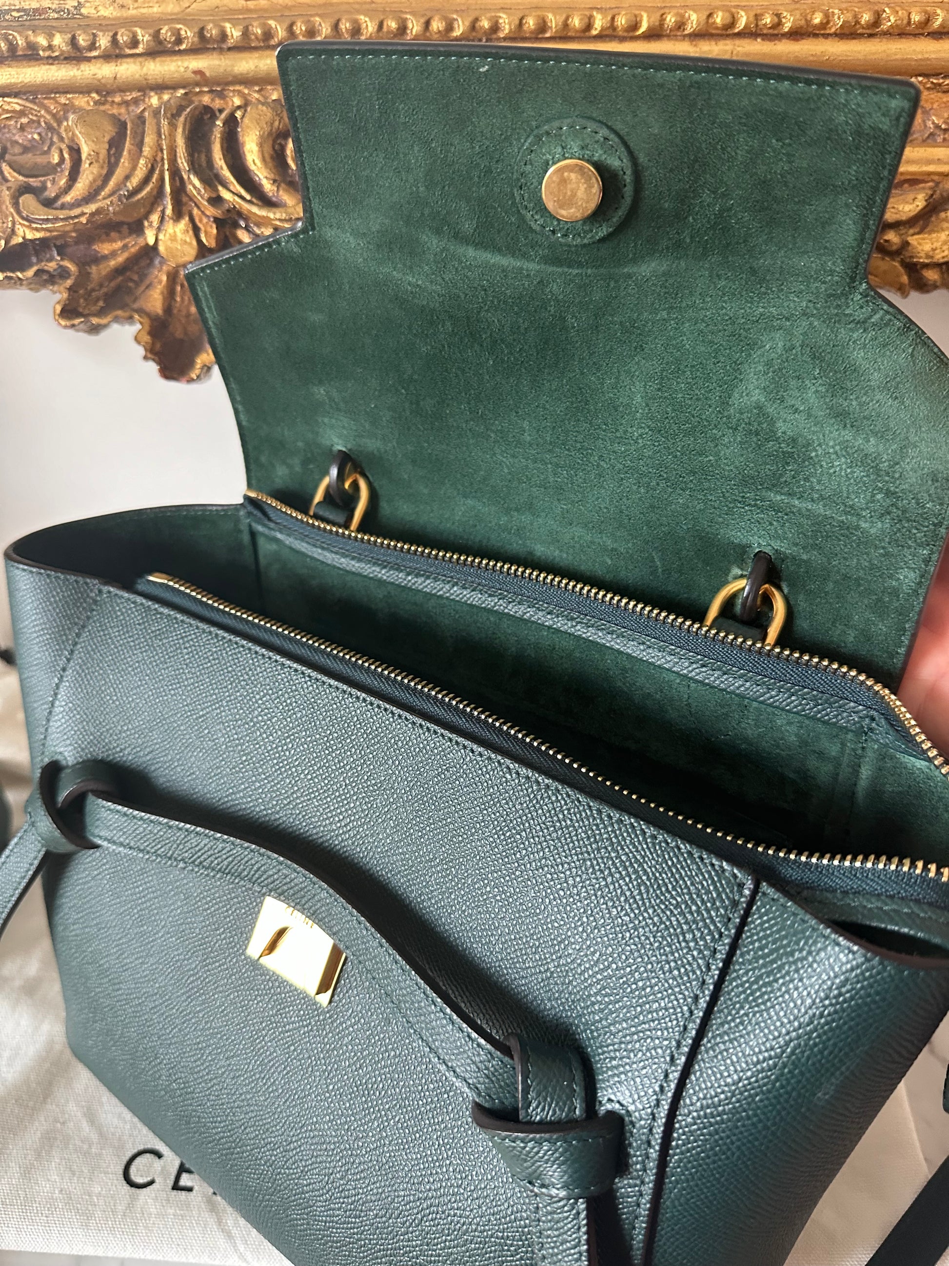 Gorgeous pine green Celine belt bag in micro size.
