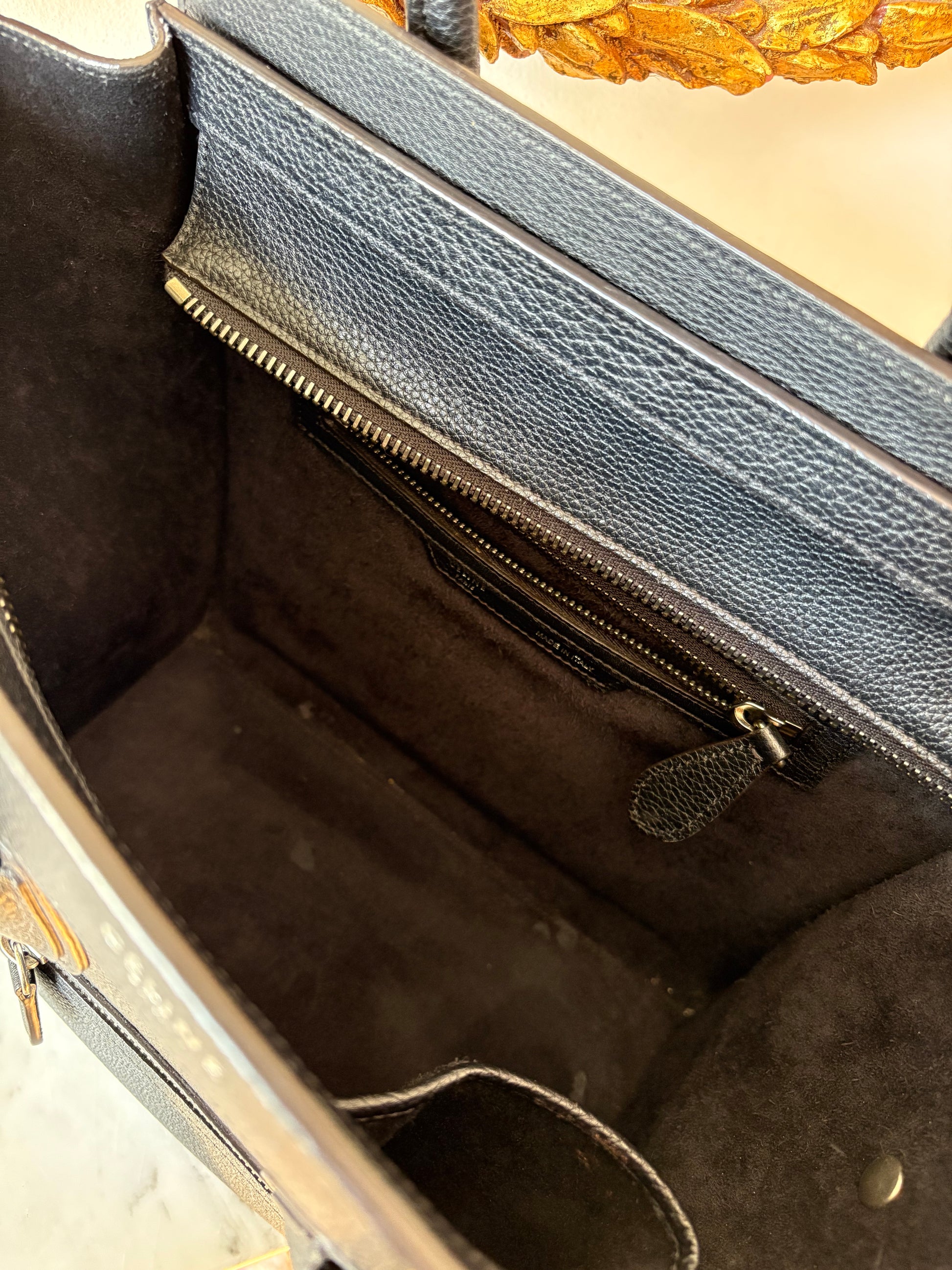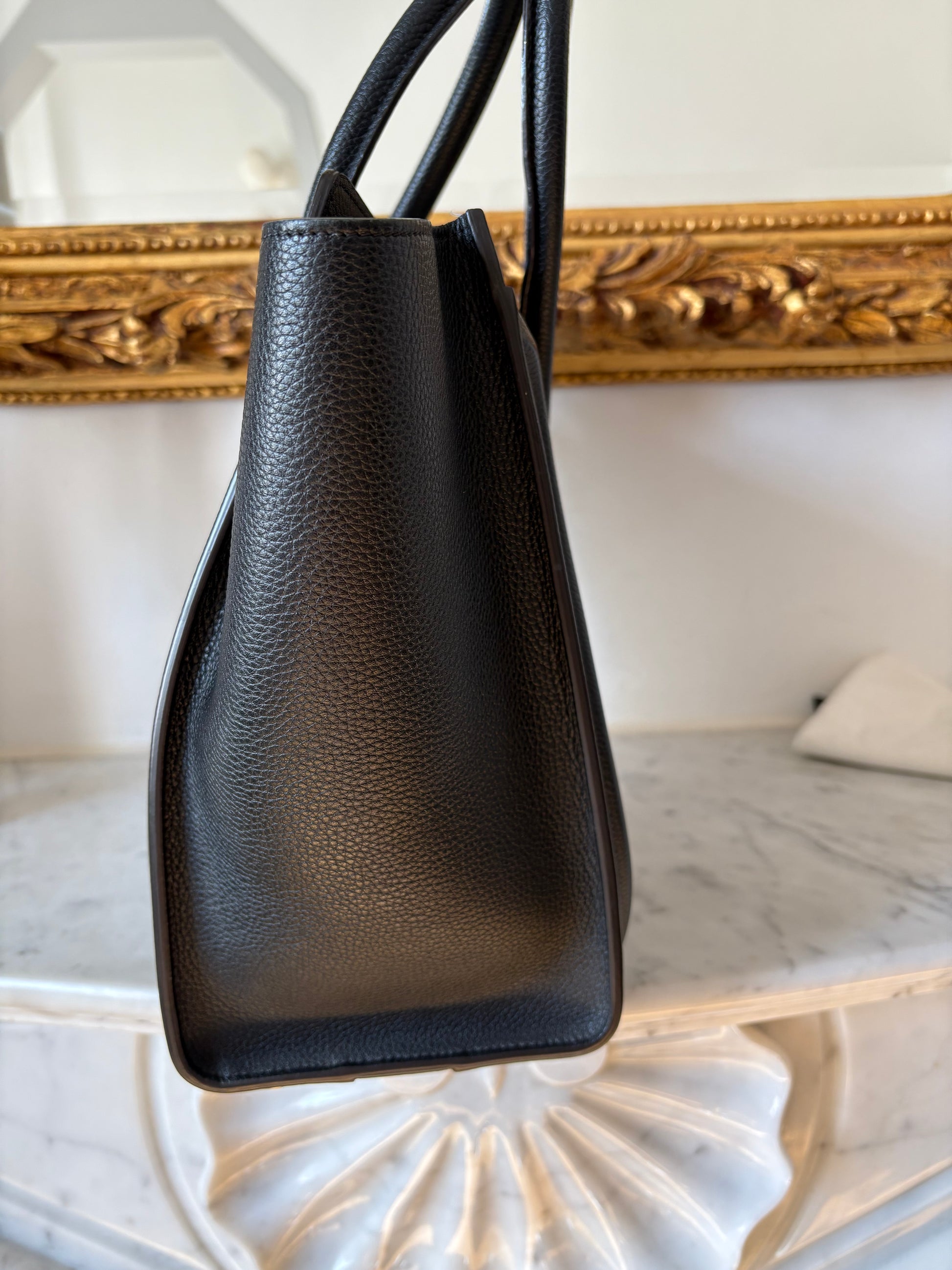 This beauty is the Micro size, which is a great medium sized bag for daily wear. The bag is made out of black pebbled leather.