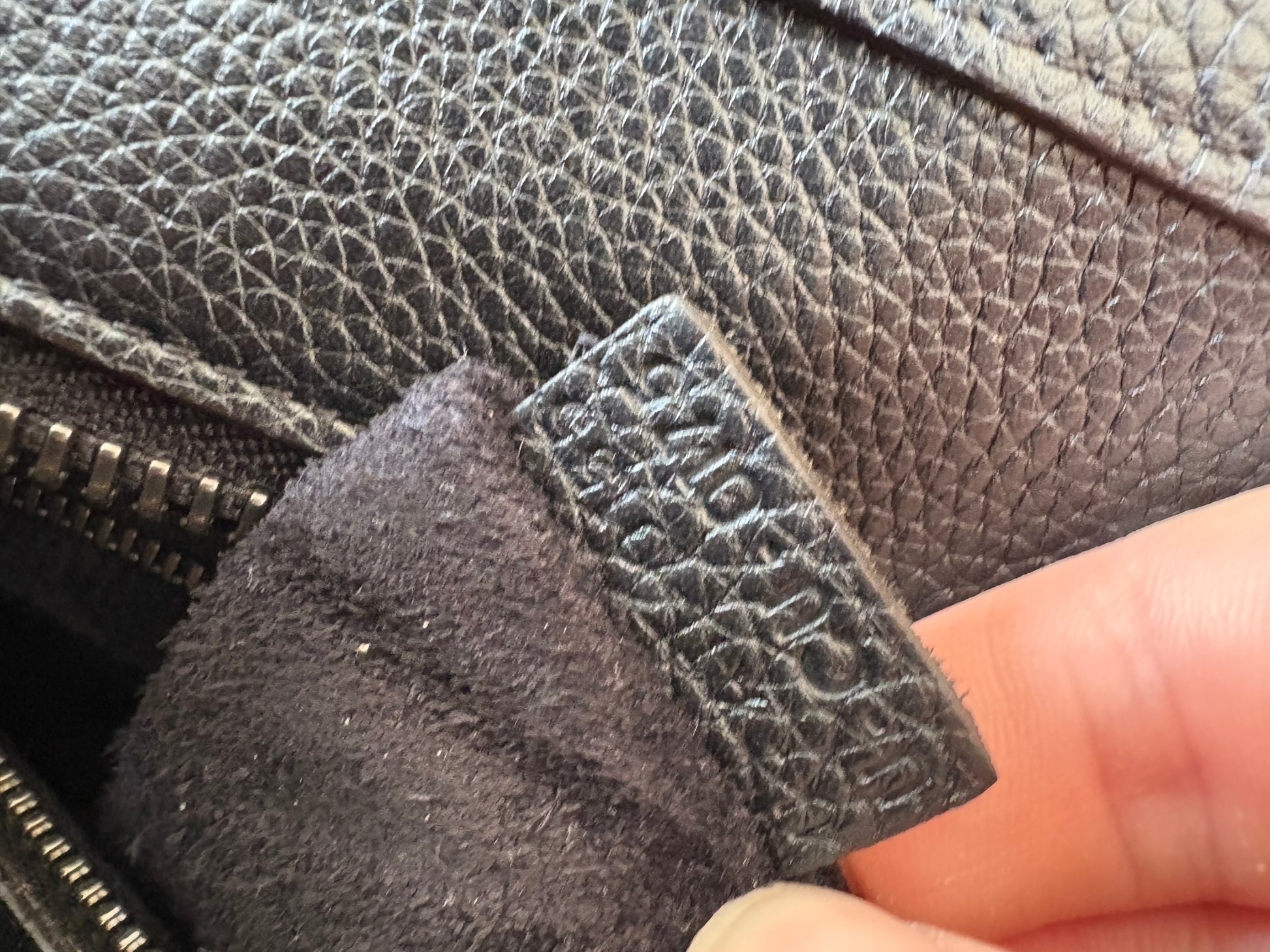 It’s in very good, barely used condition without any damage. Both structure and leather are looking great. There is only some very slight abrasion on the front. The interior shows some small light stains, but they can most likely be cleaned.