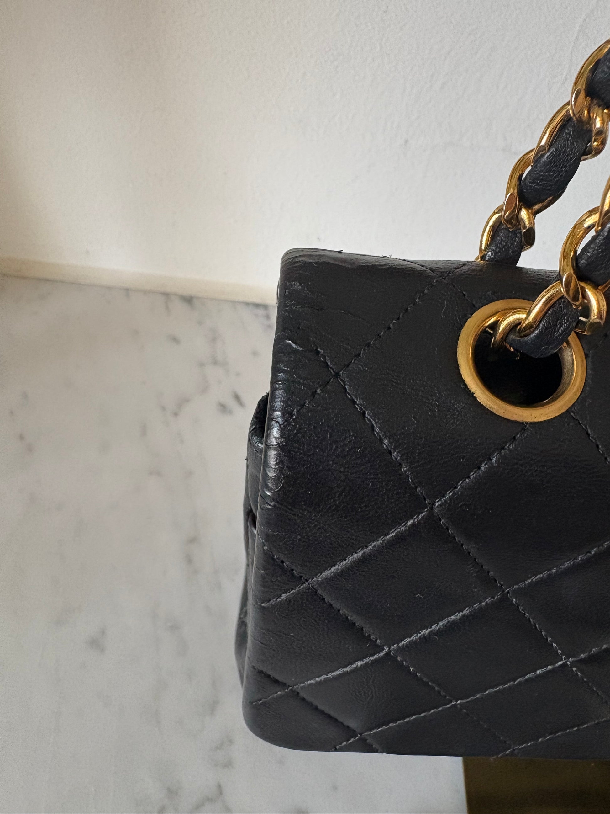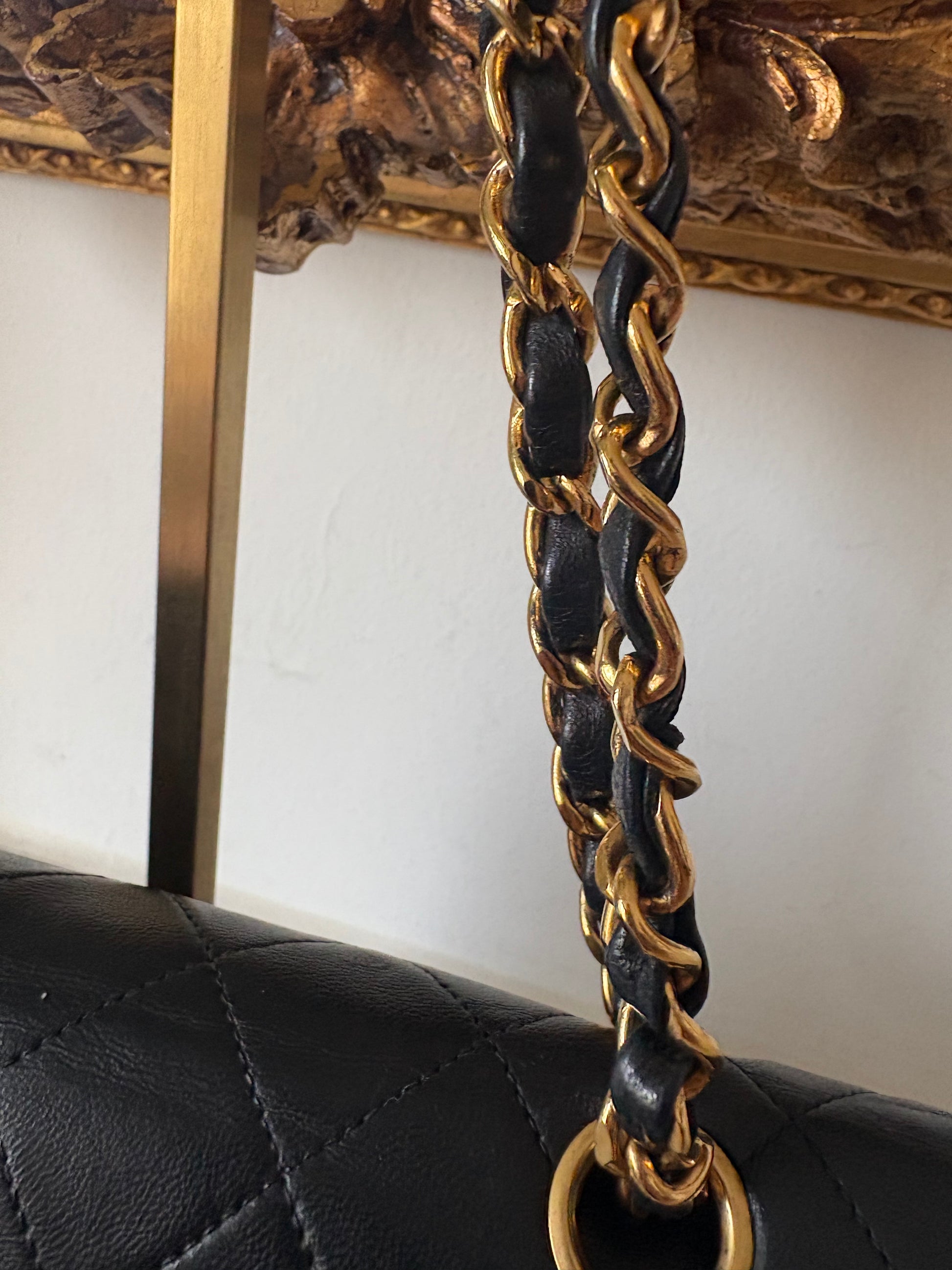 The iconic Chanel Classic flap in size medium, in black lambskin and 24-karat gold plated hardware.