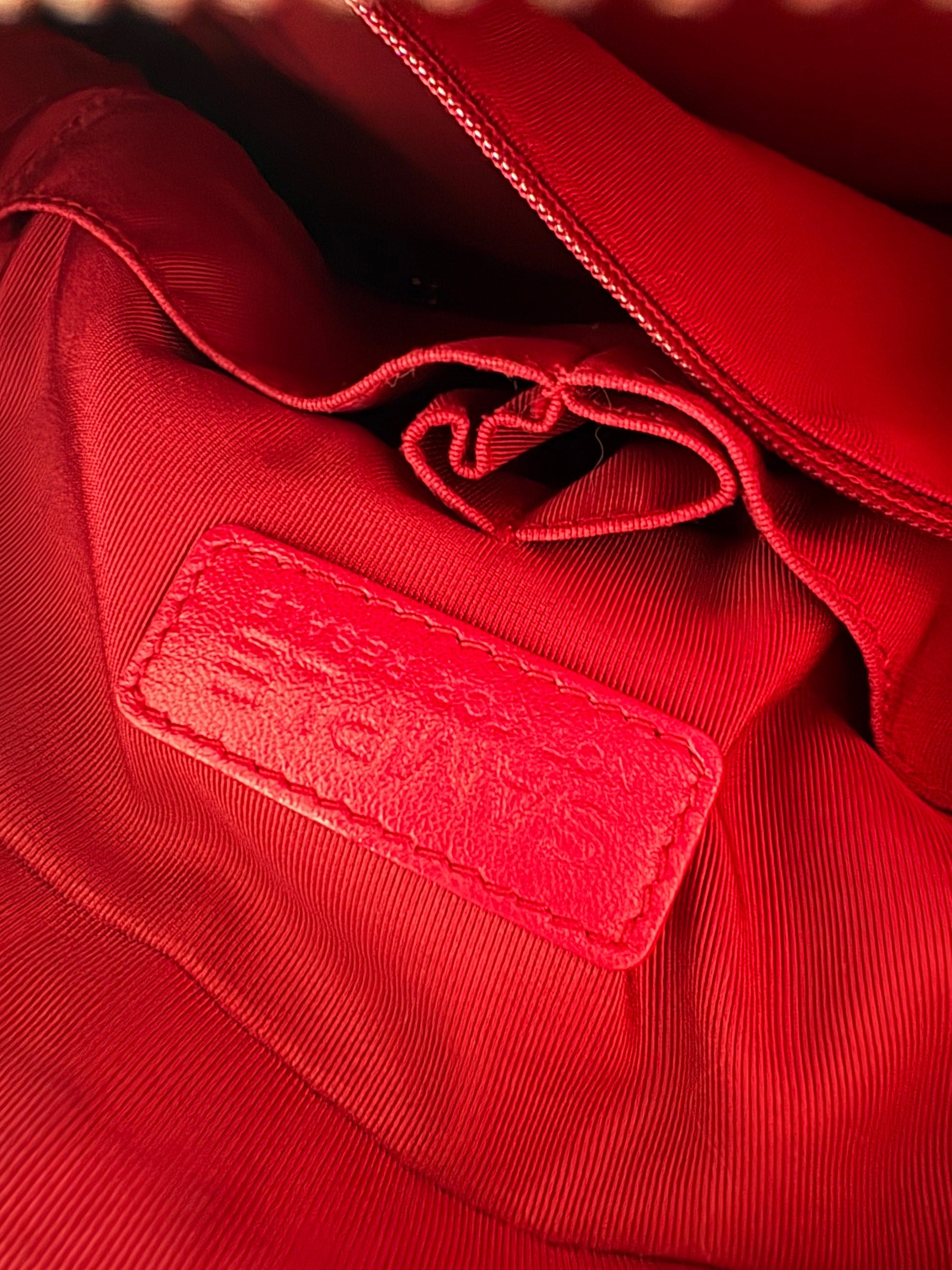 This bag is in good condition, with some normal signs of use at the black leather base of the bag.
