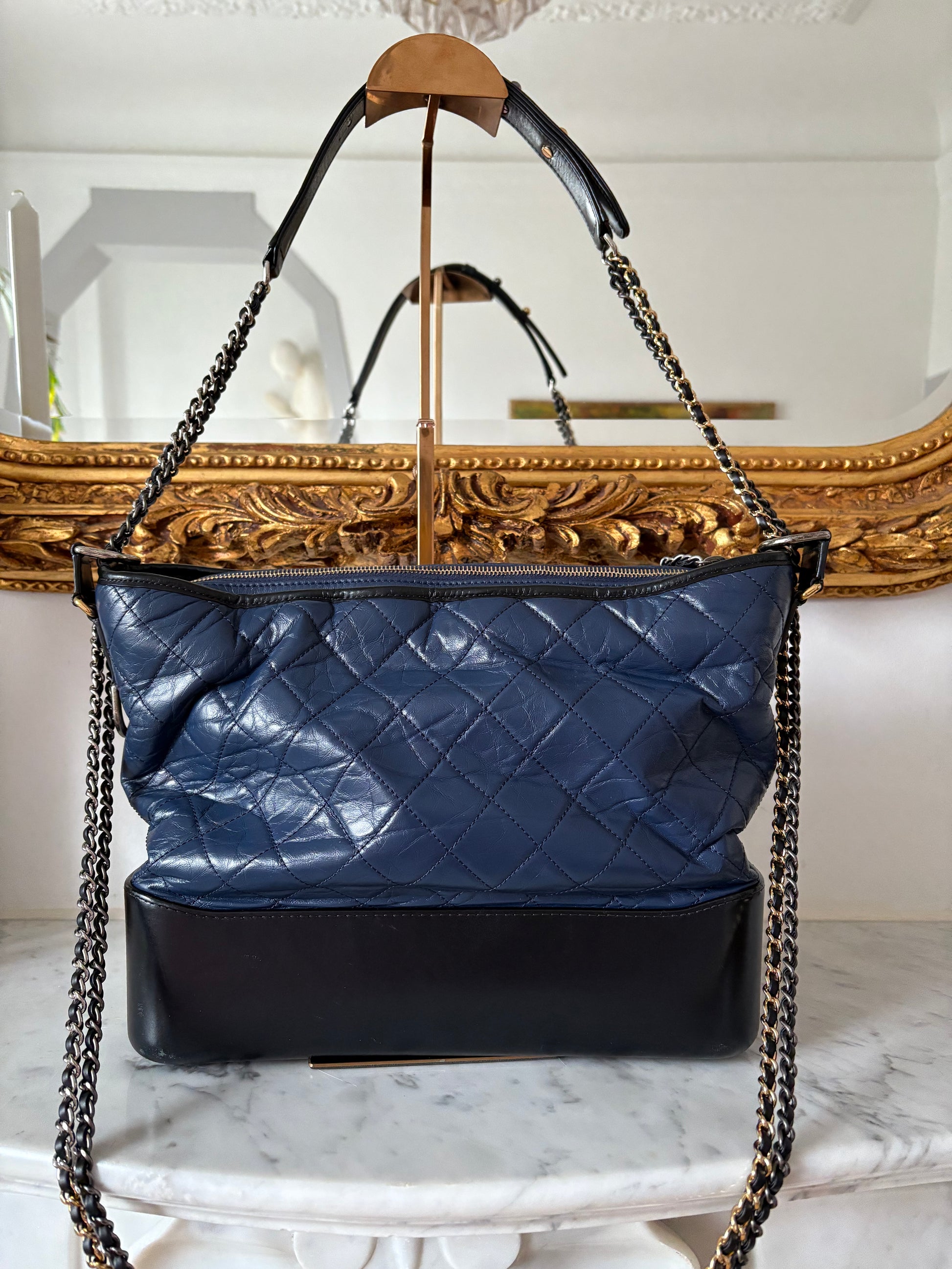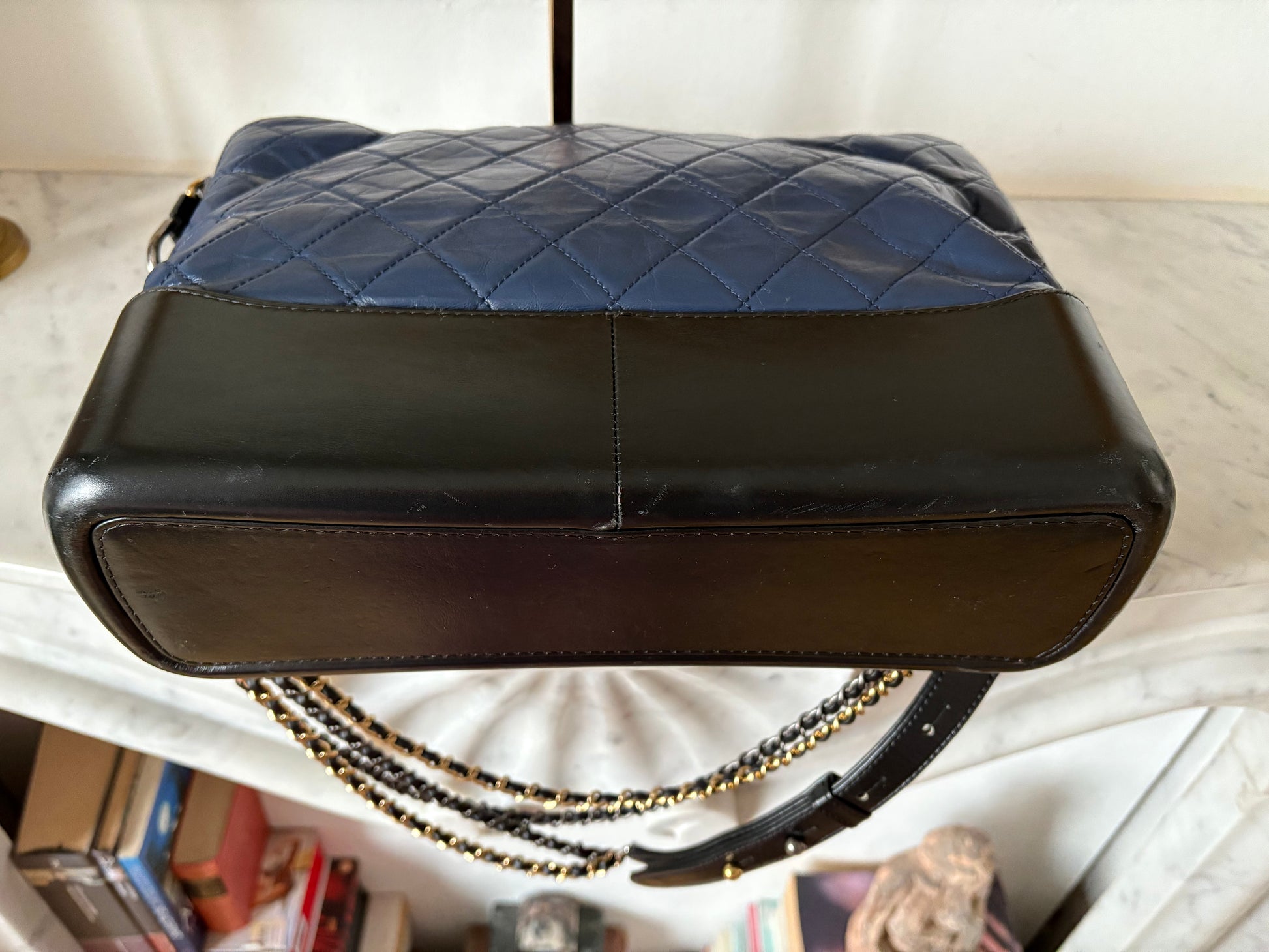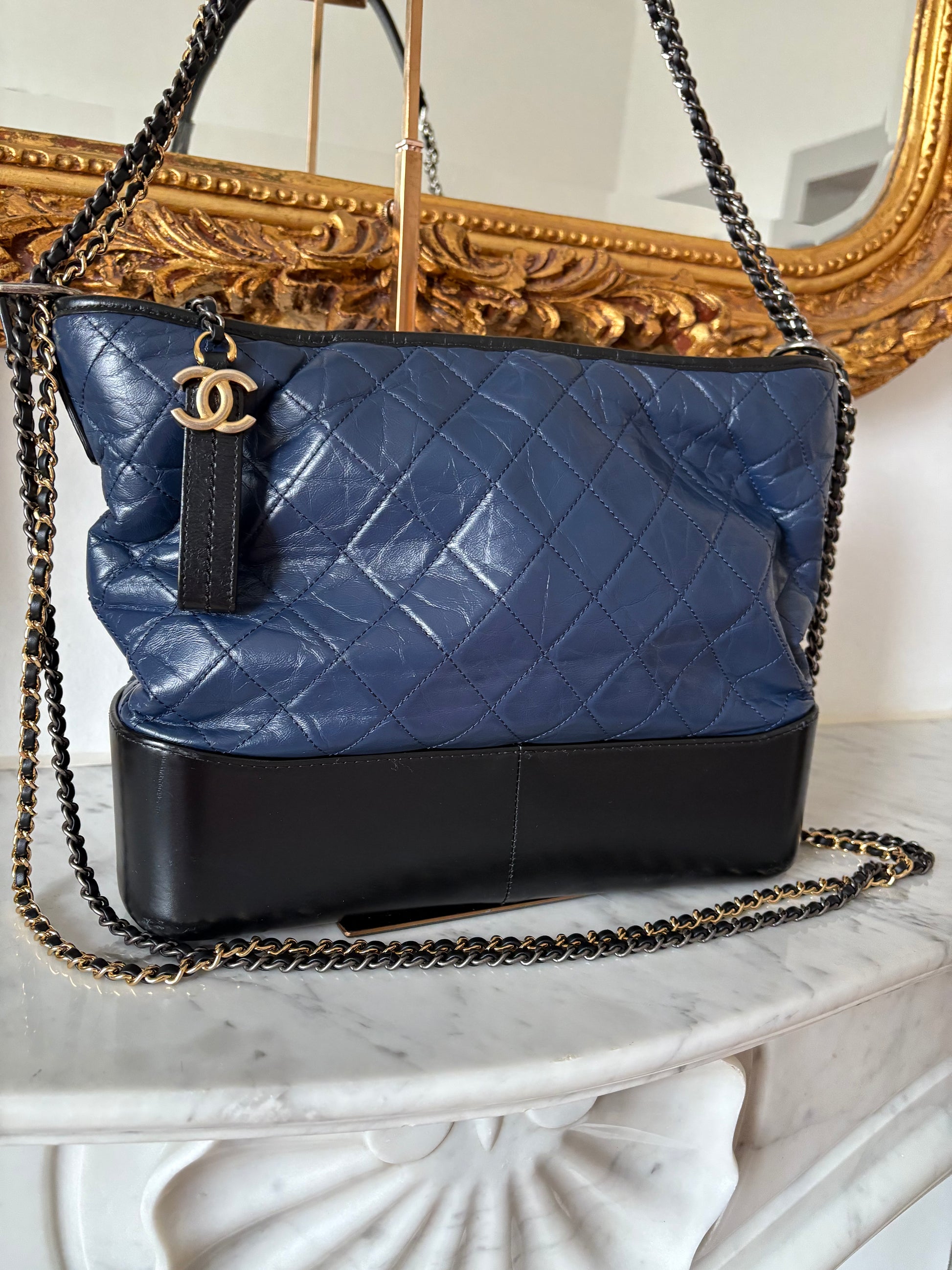 Beautiful Chanel Gabrielle bag in black & navy blue calf leather.