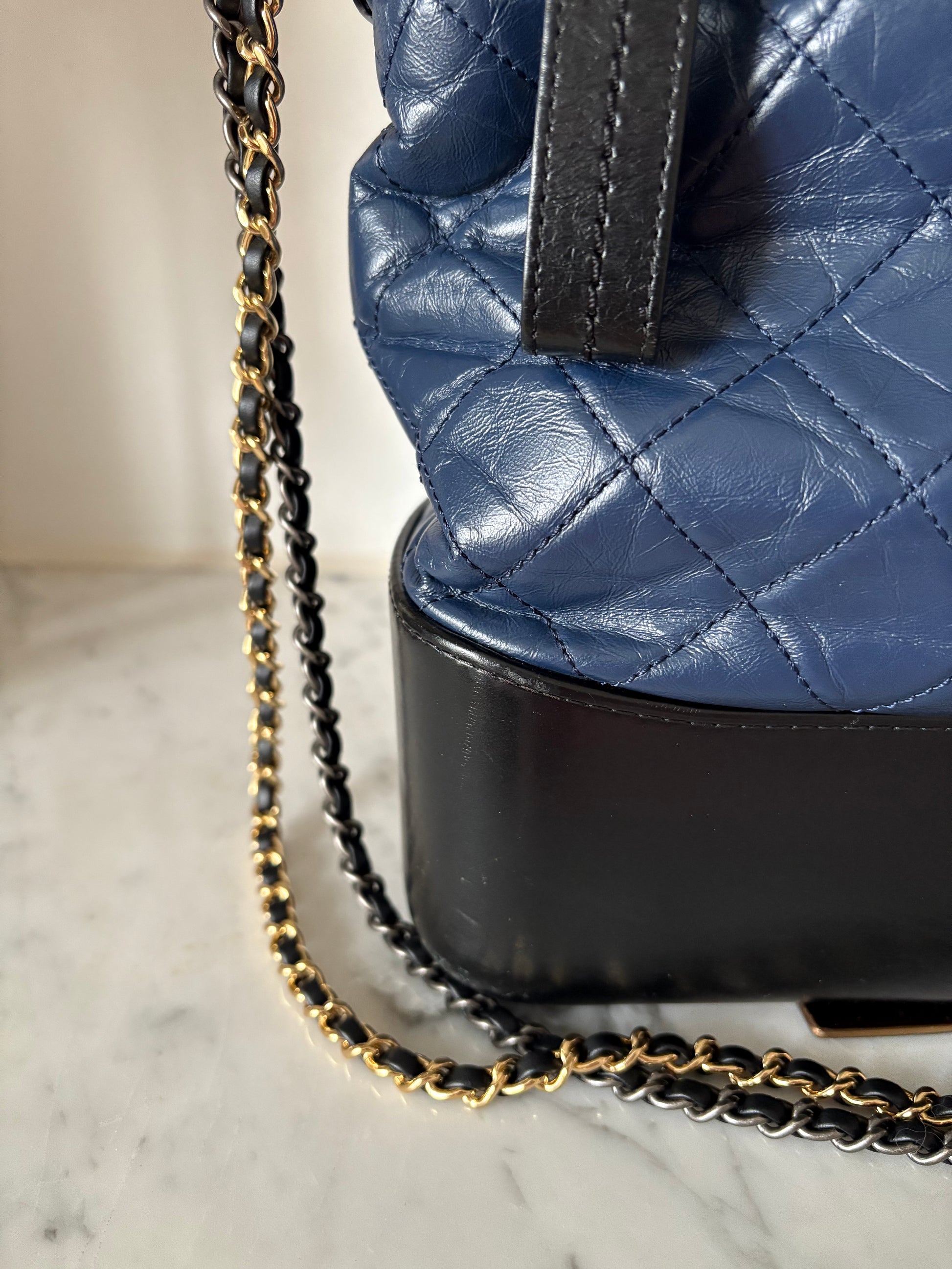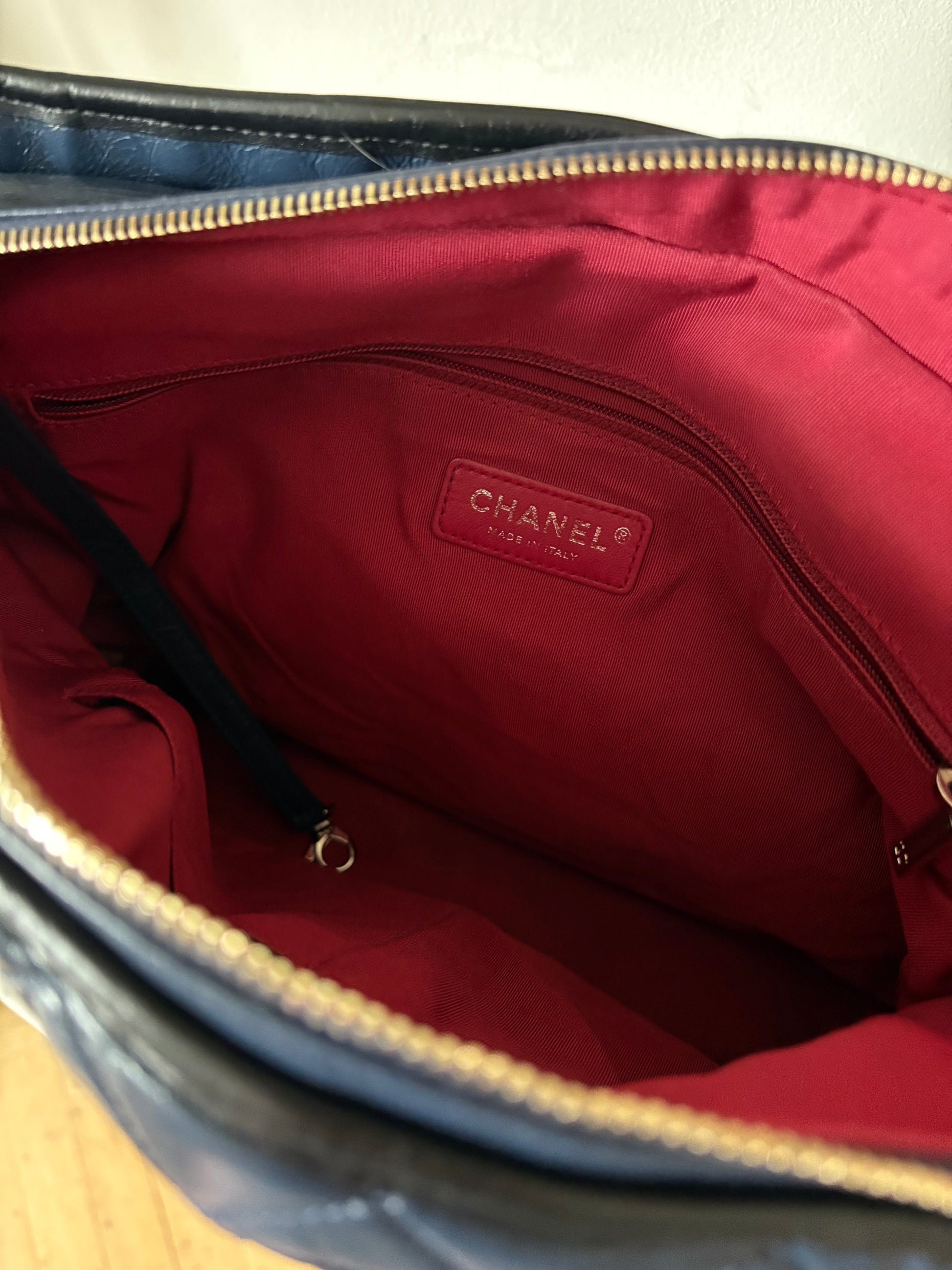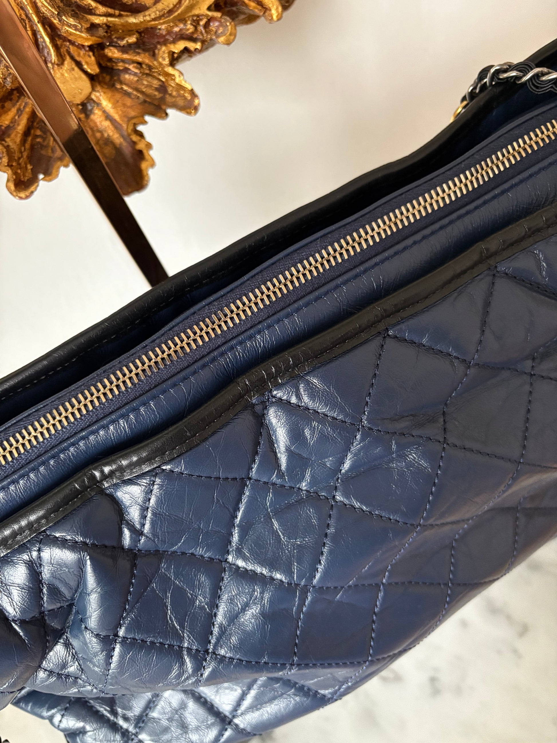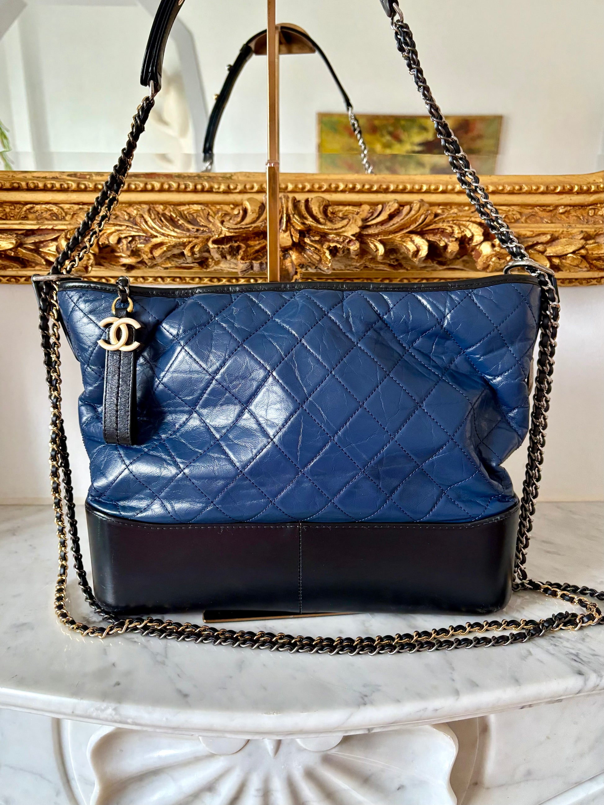 Beautiful Chanel Gabrielle bag in black & navy blue calf leather.