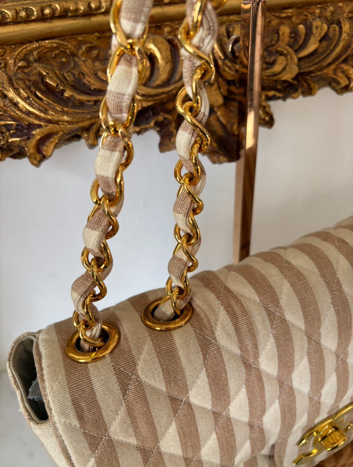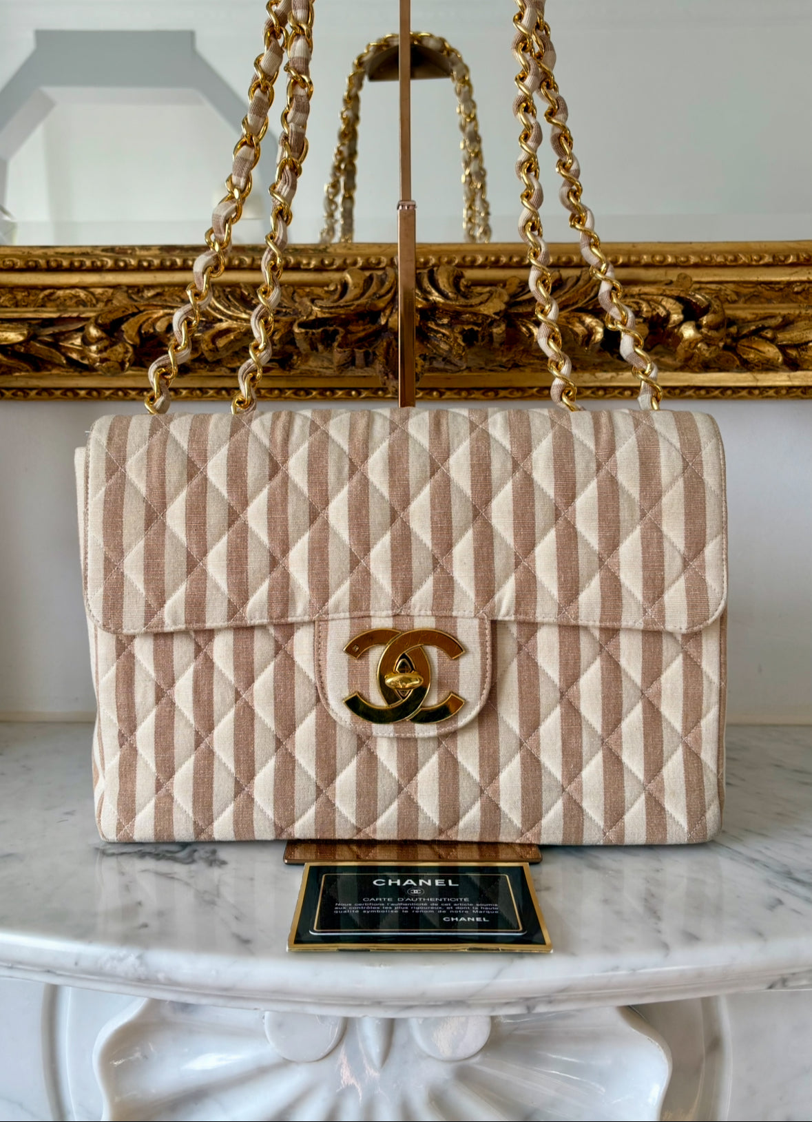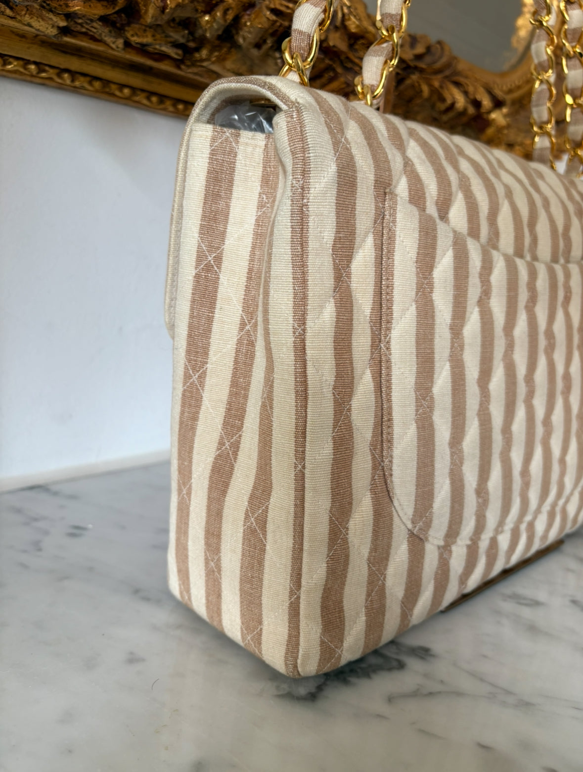Stunning and rare Chanel Jumbo classic flap bag in striped pastel cotton 🤍
