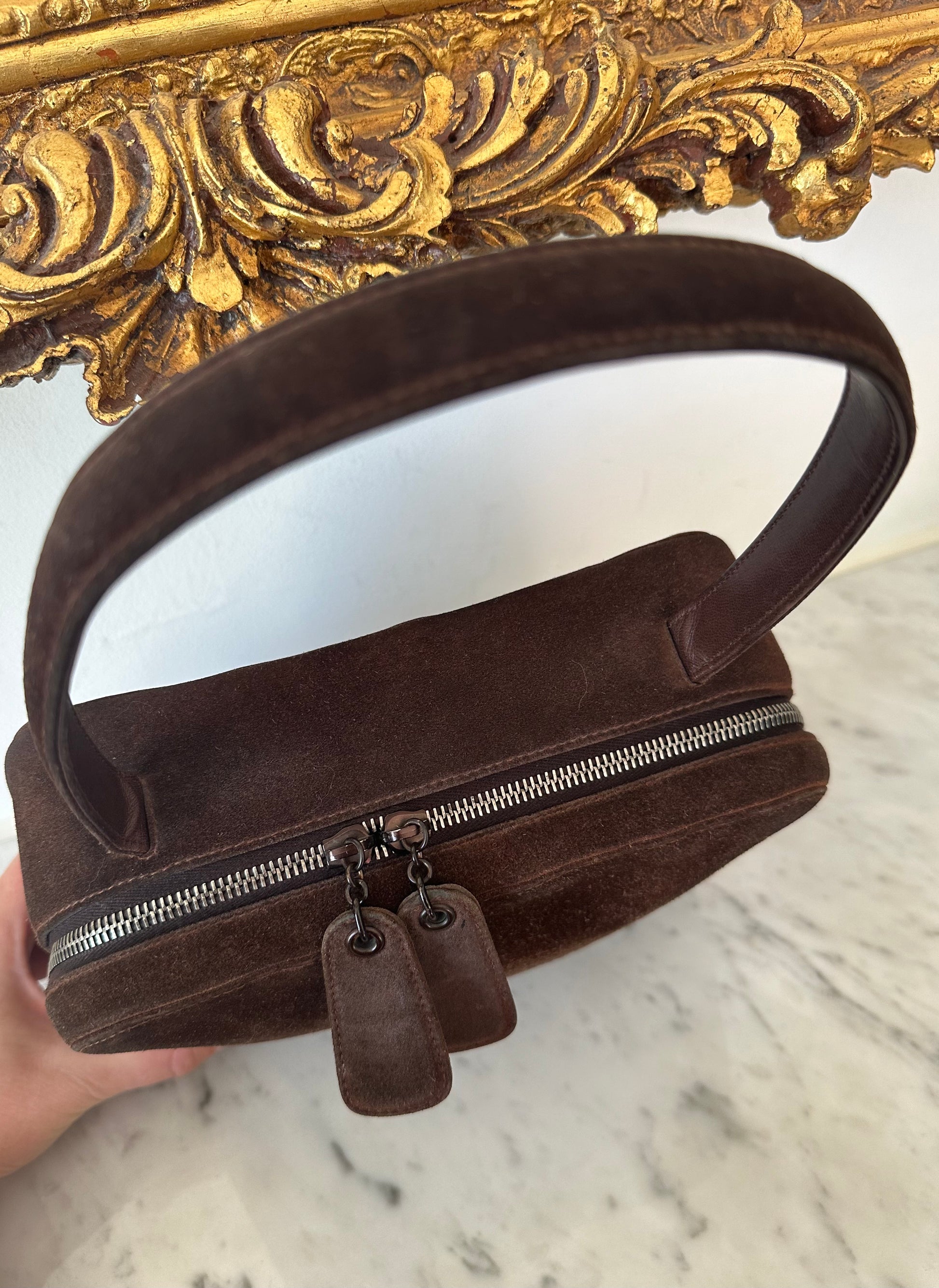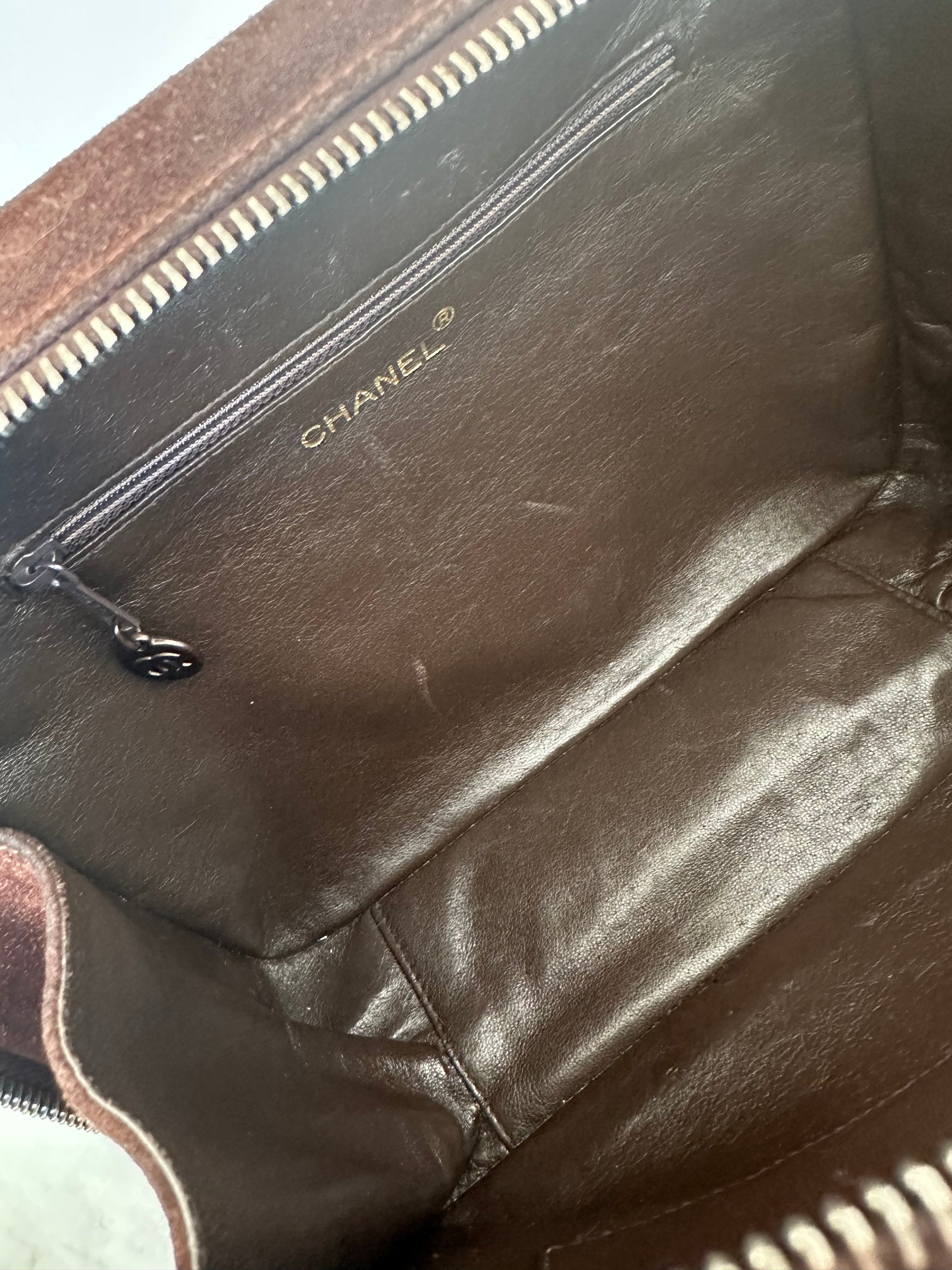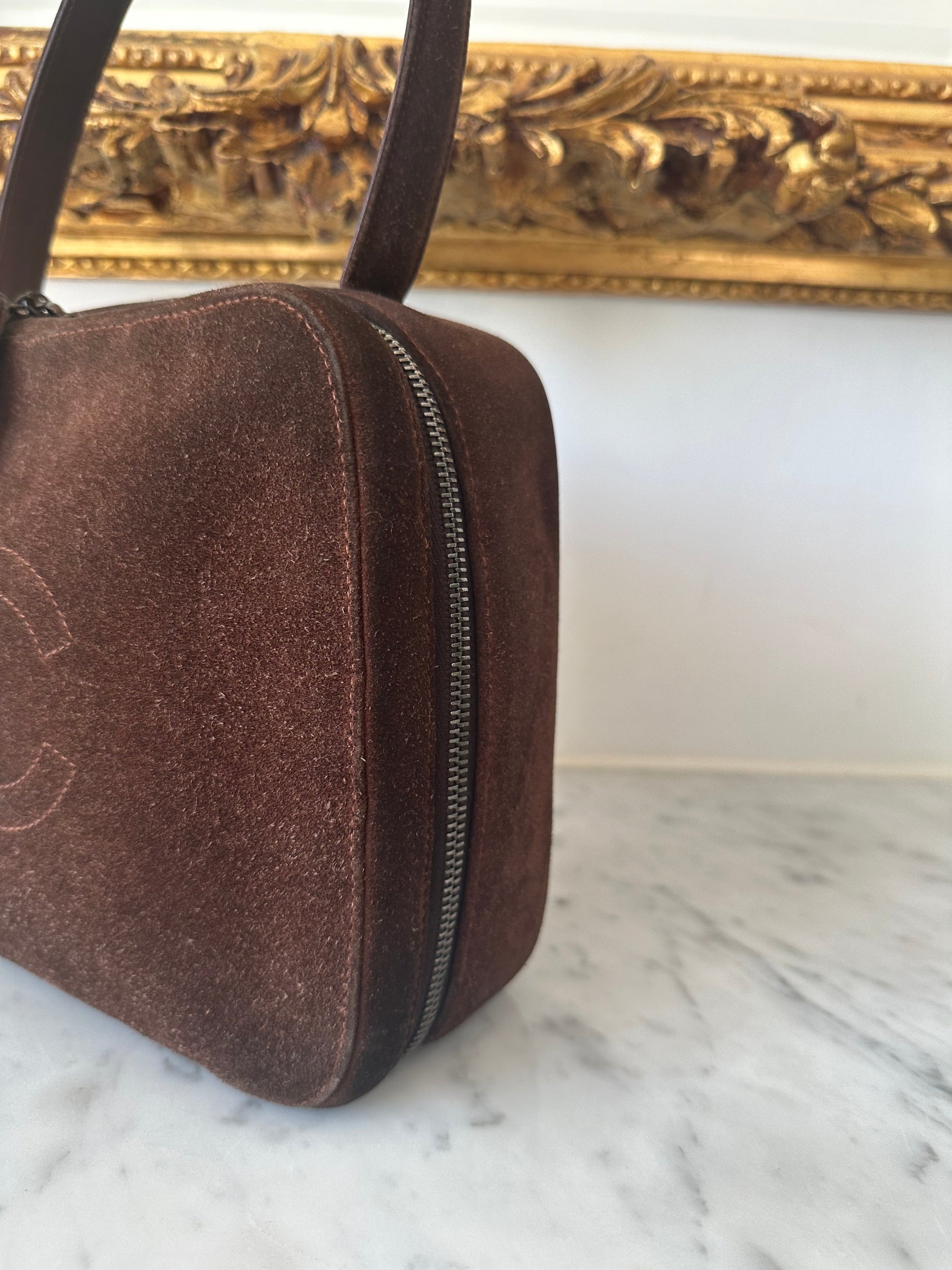 This super cute vanity style Chanel bag is very much on trend, and the brown suede is just perfect for your fall & winter fits. Will look great with a floral dress in summer too!