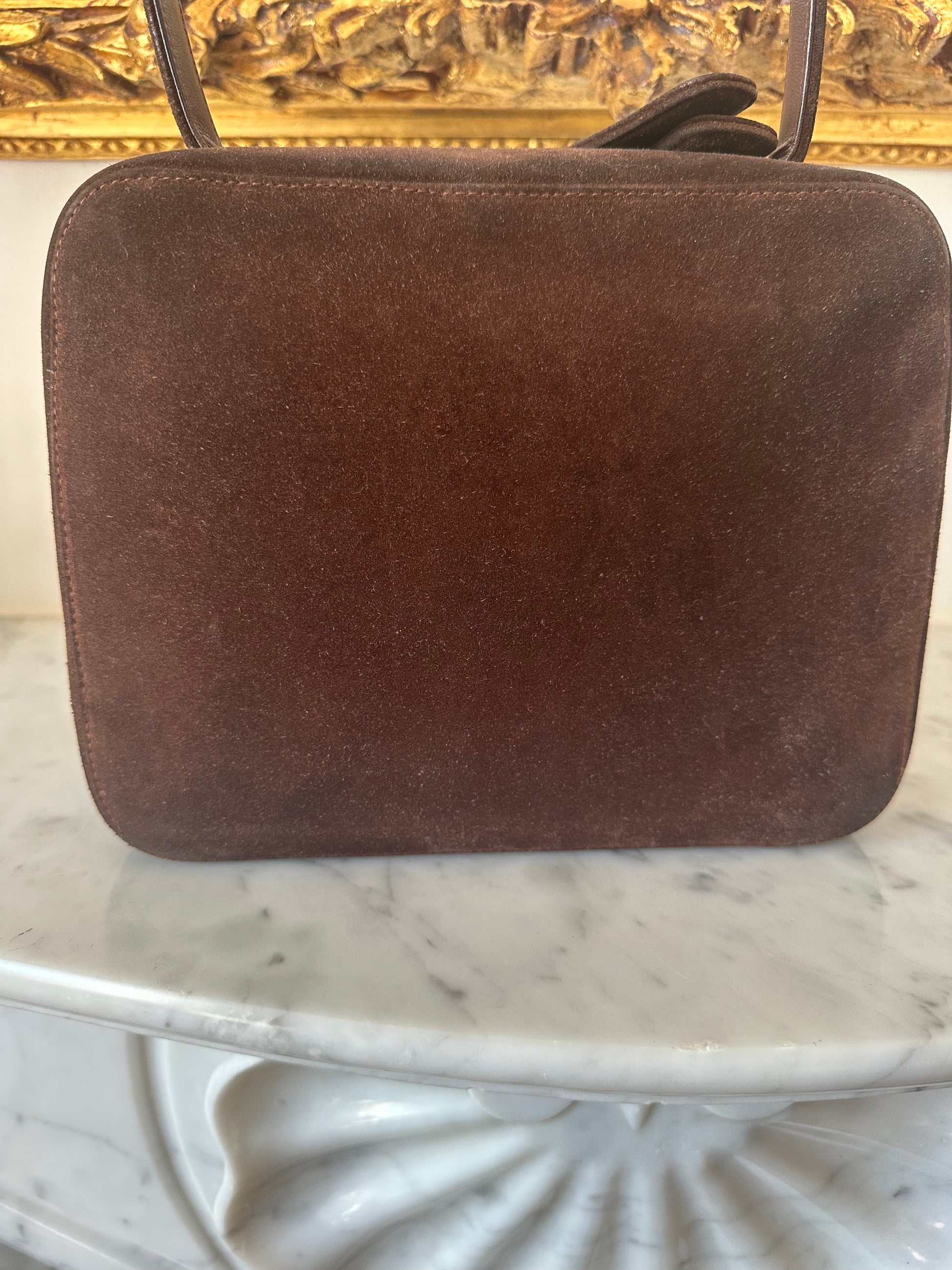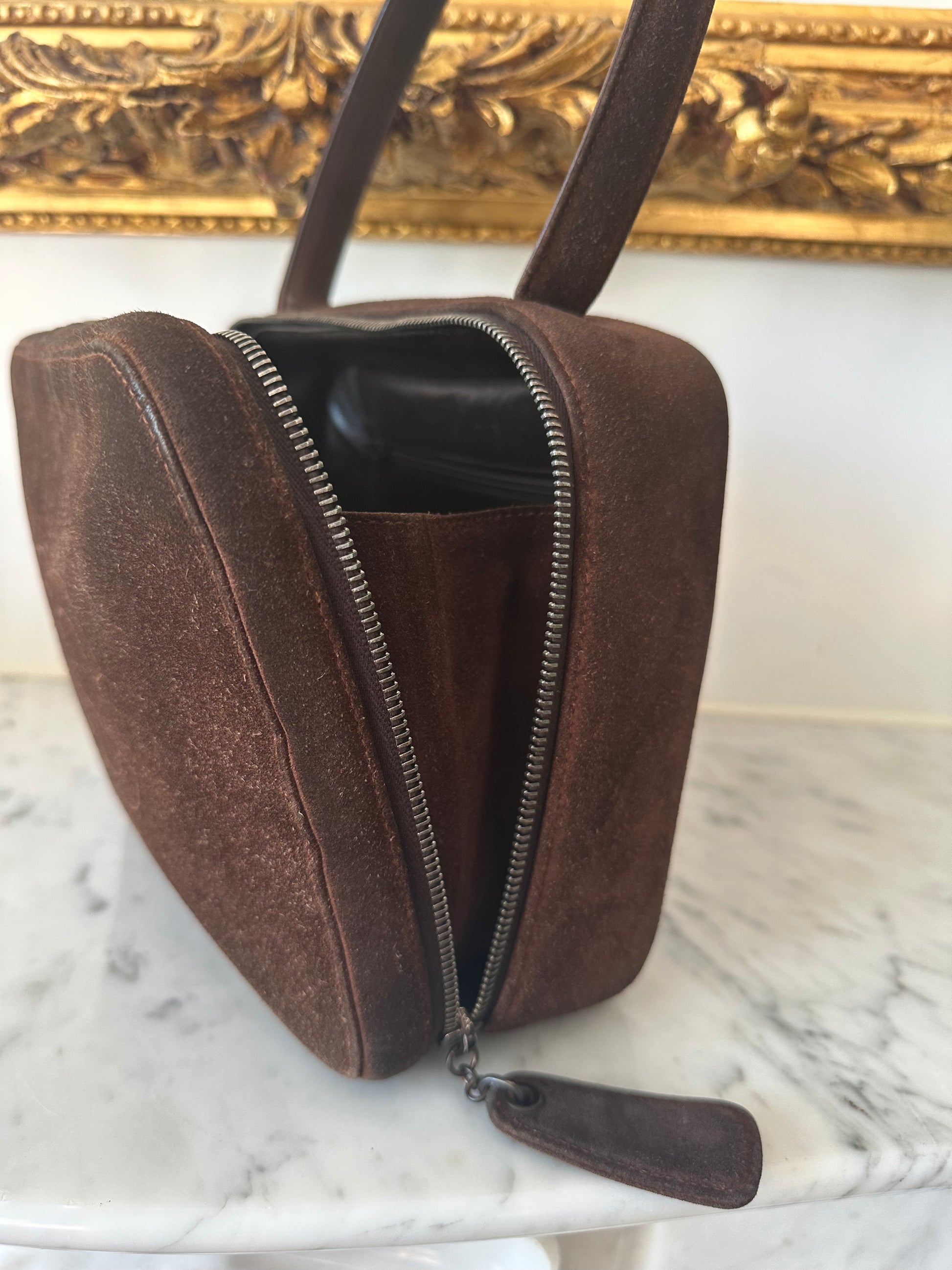 The bag is from the early 2000’s and is in used condition; the suede shows some age, however, it is not balding or stained. The zipper works perfectly, and the interior is in very good condition, including the serial sticker.