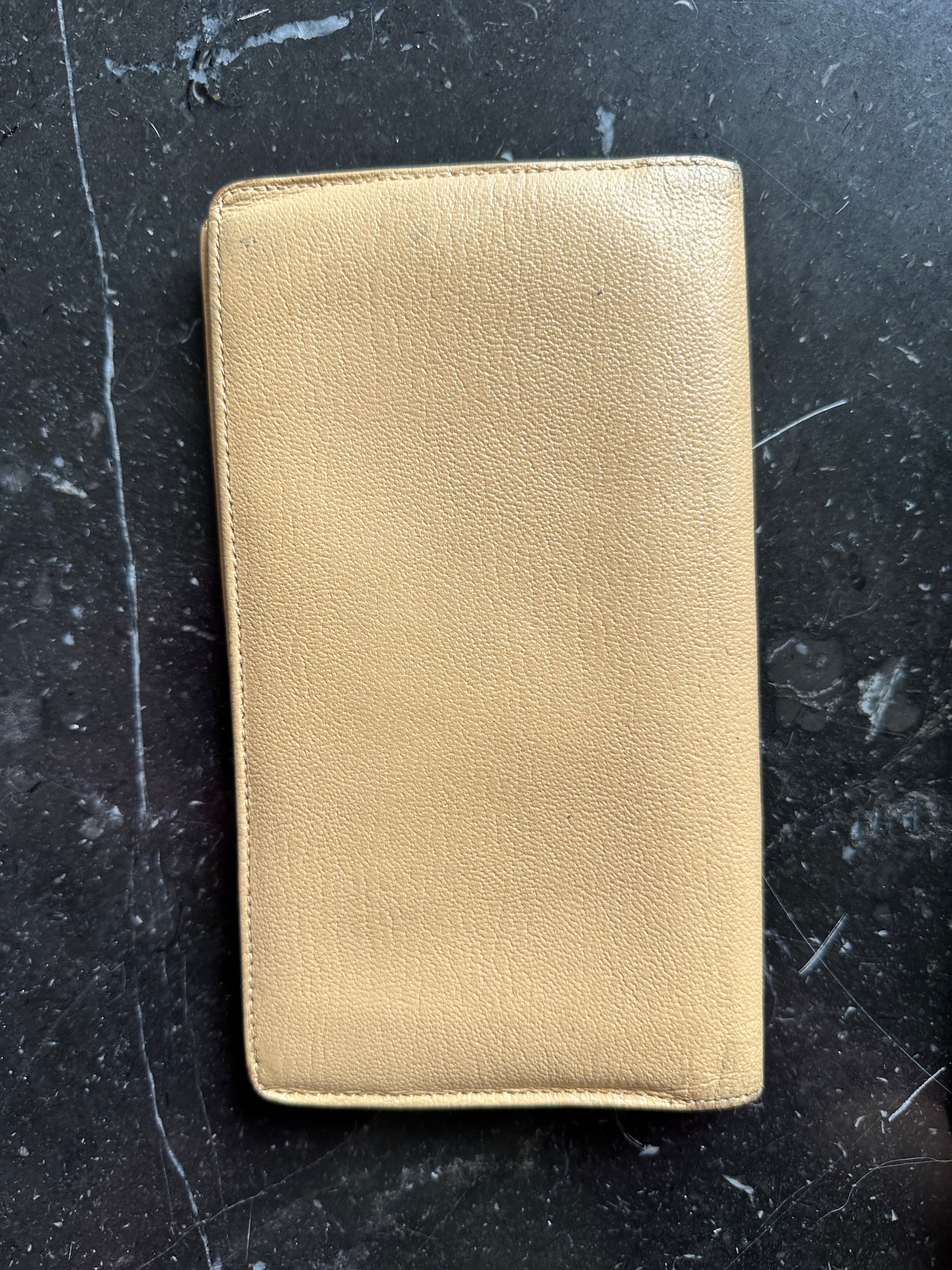 Beige vintage Chanel wallet. This is a long but slim and lightweight wallet, perfect to store many cards and both paper and coin money.