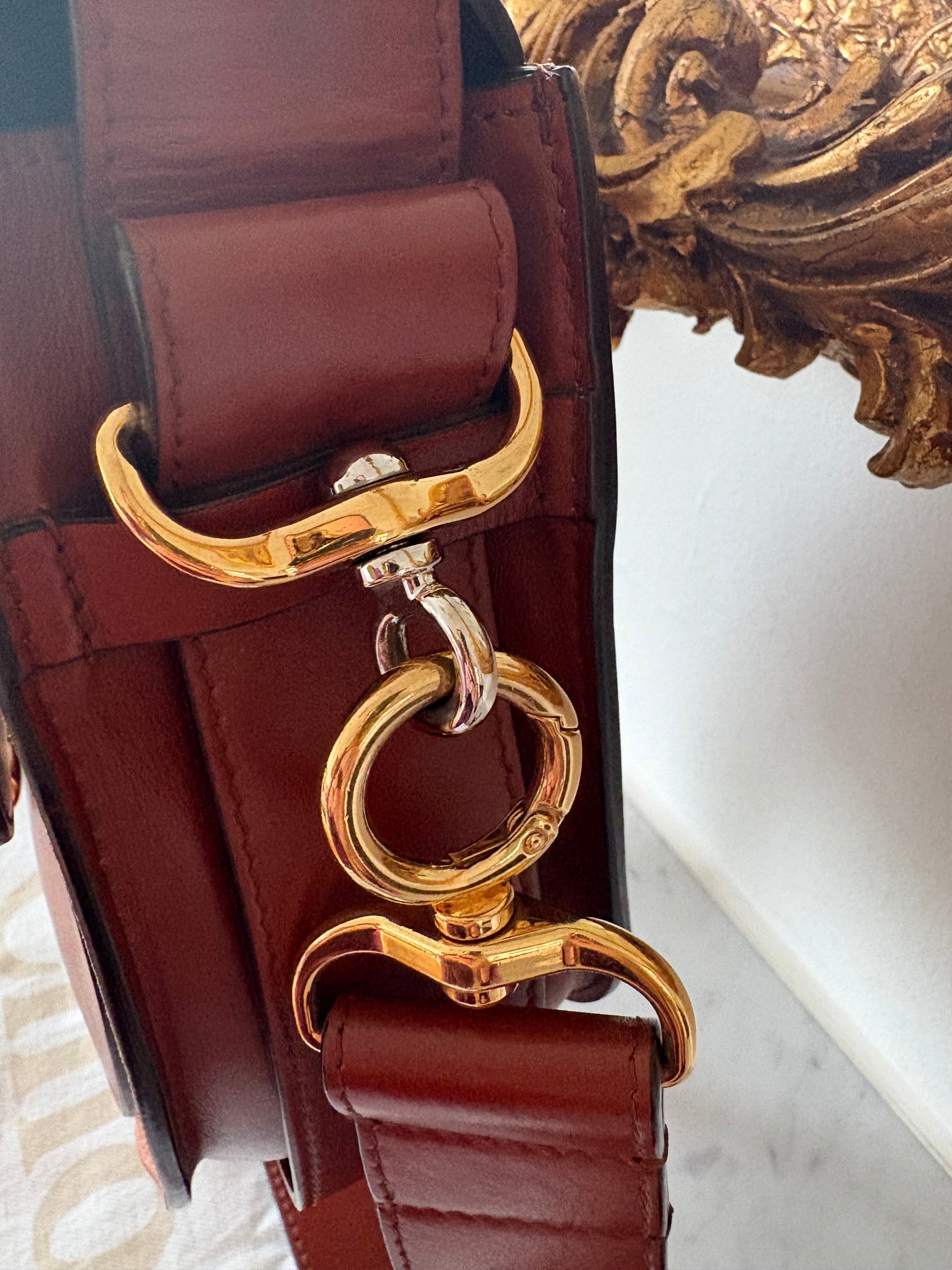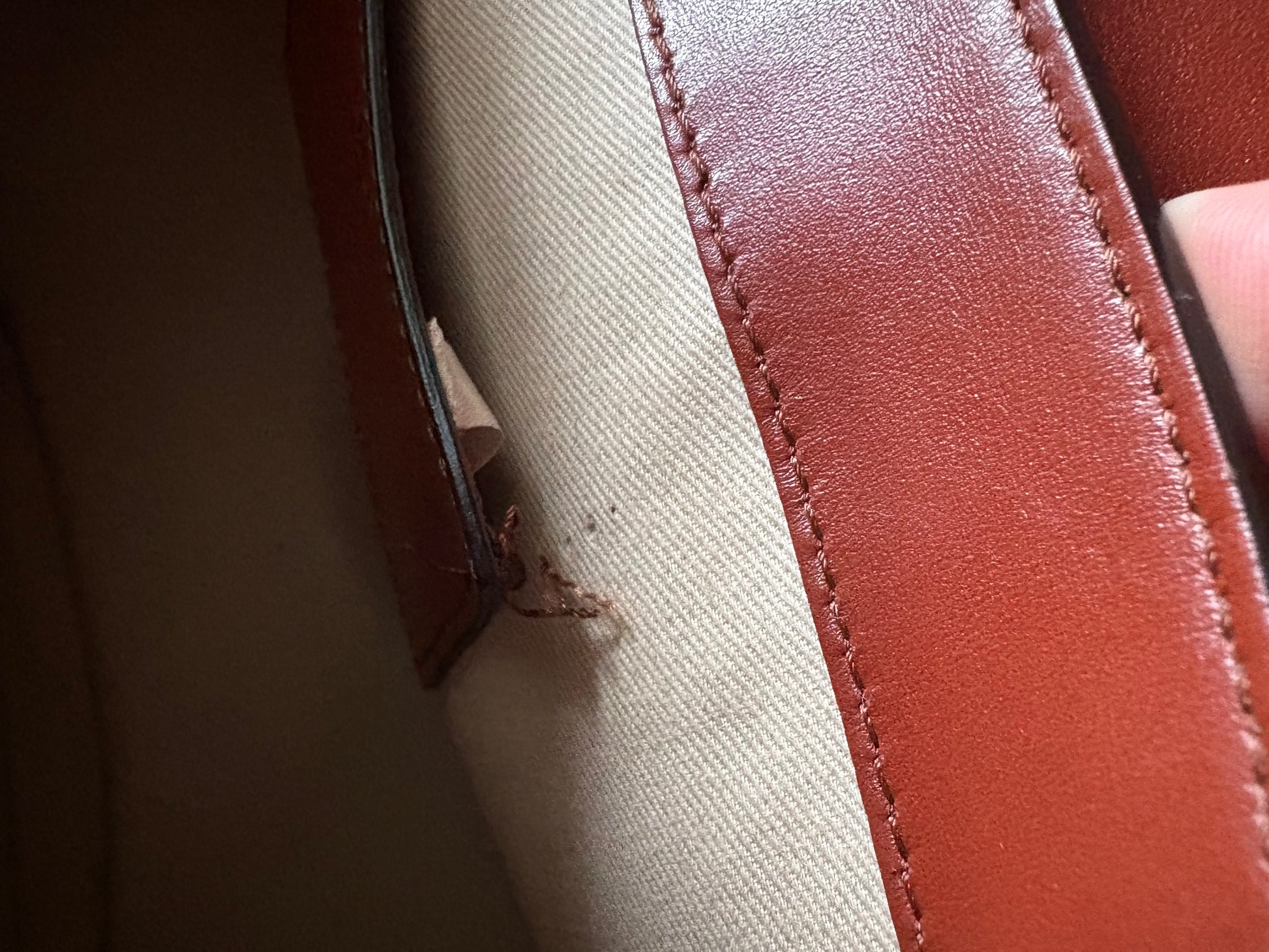 The bag is in very good condition, with minor signs of usage on the leather. In the interior there is a loose seam on the small inner pocket.