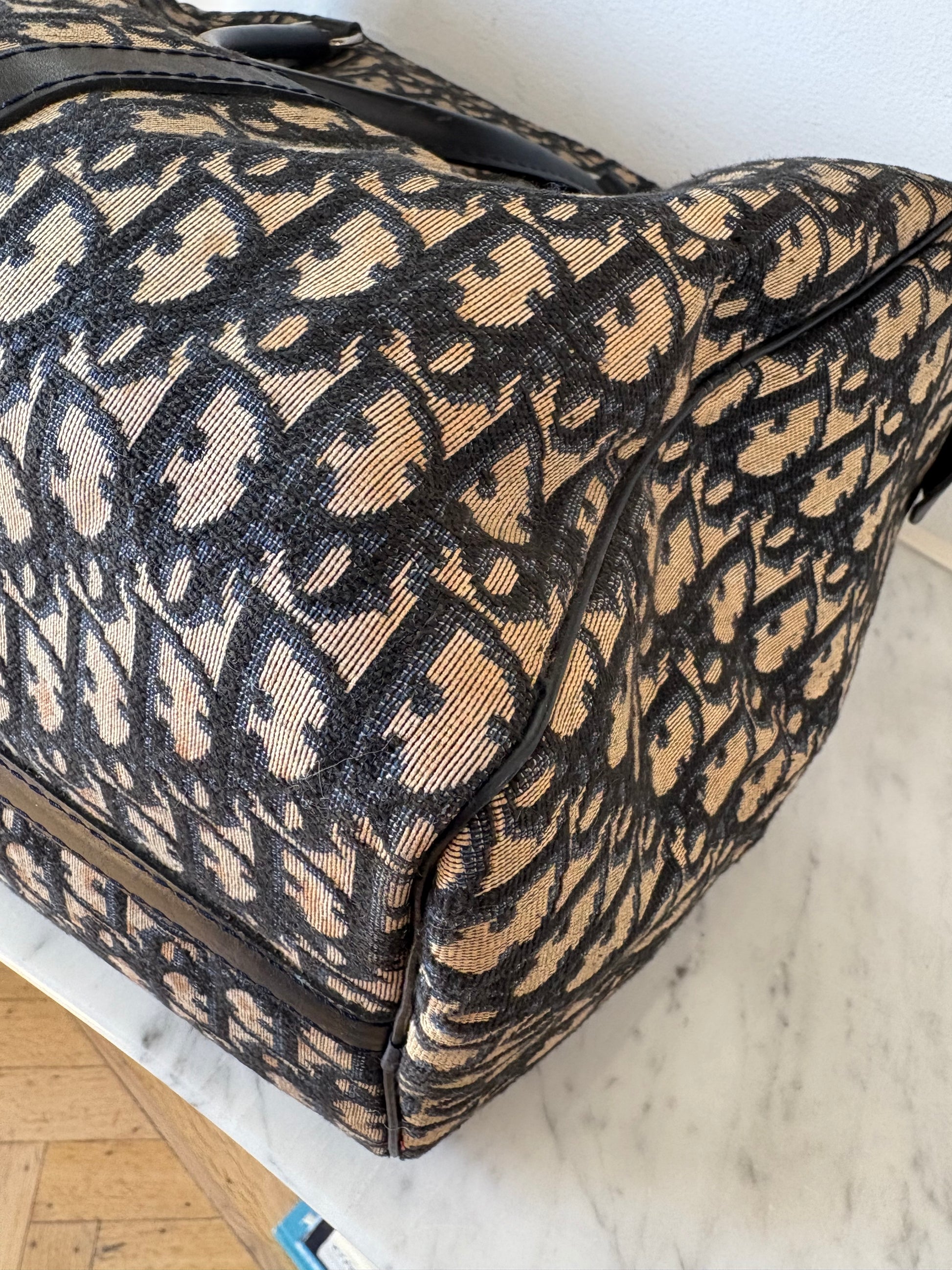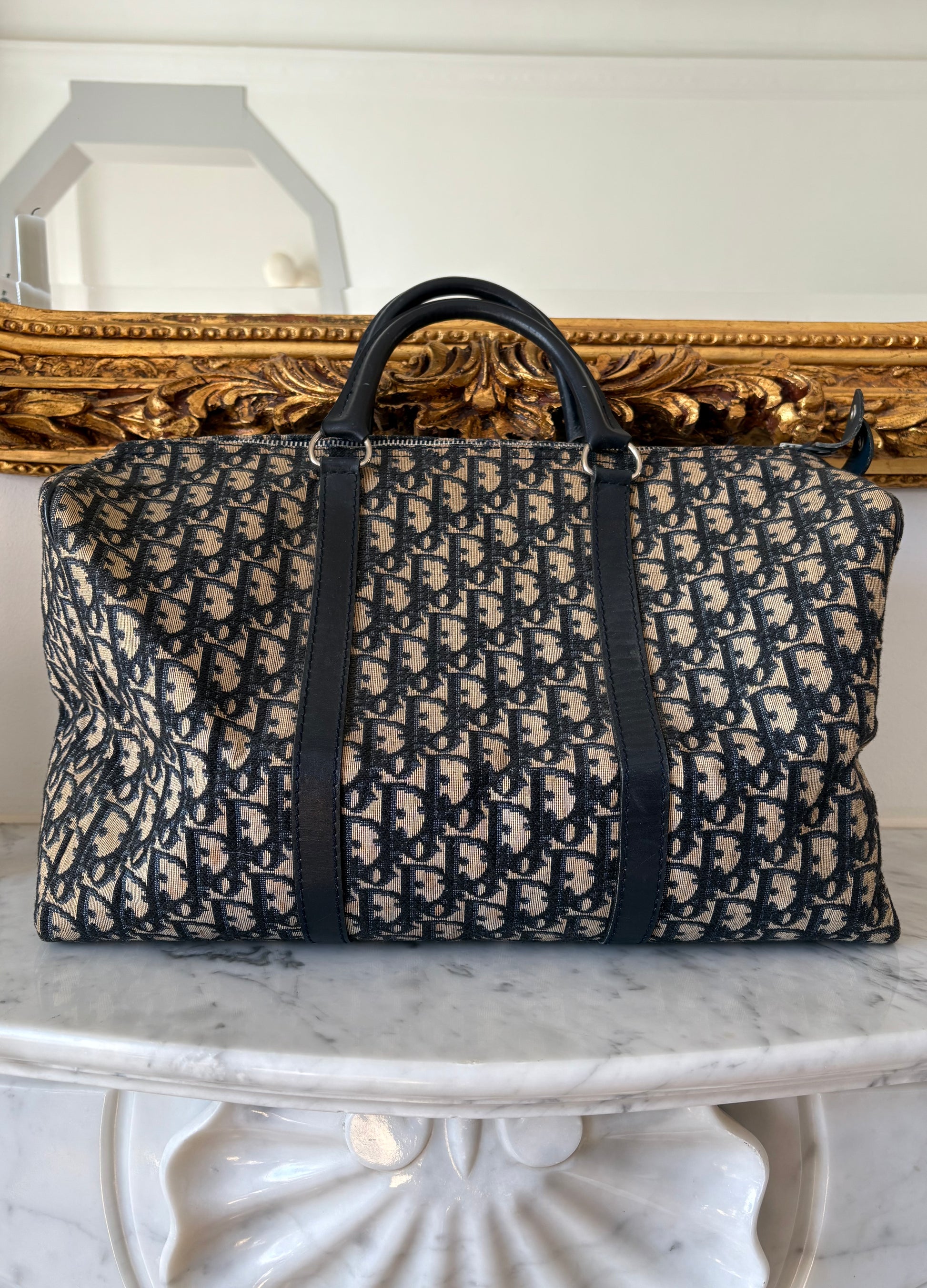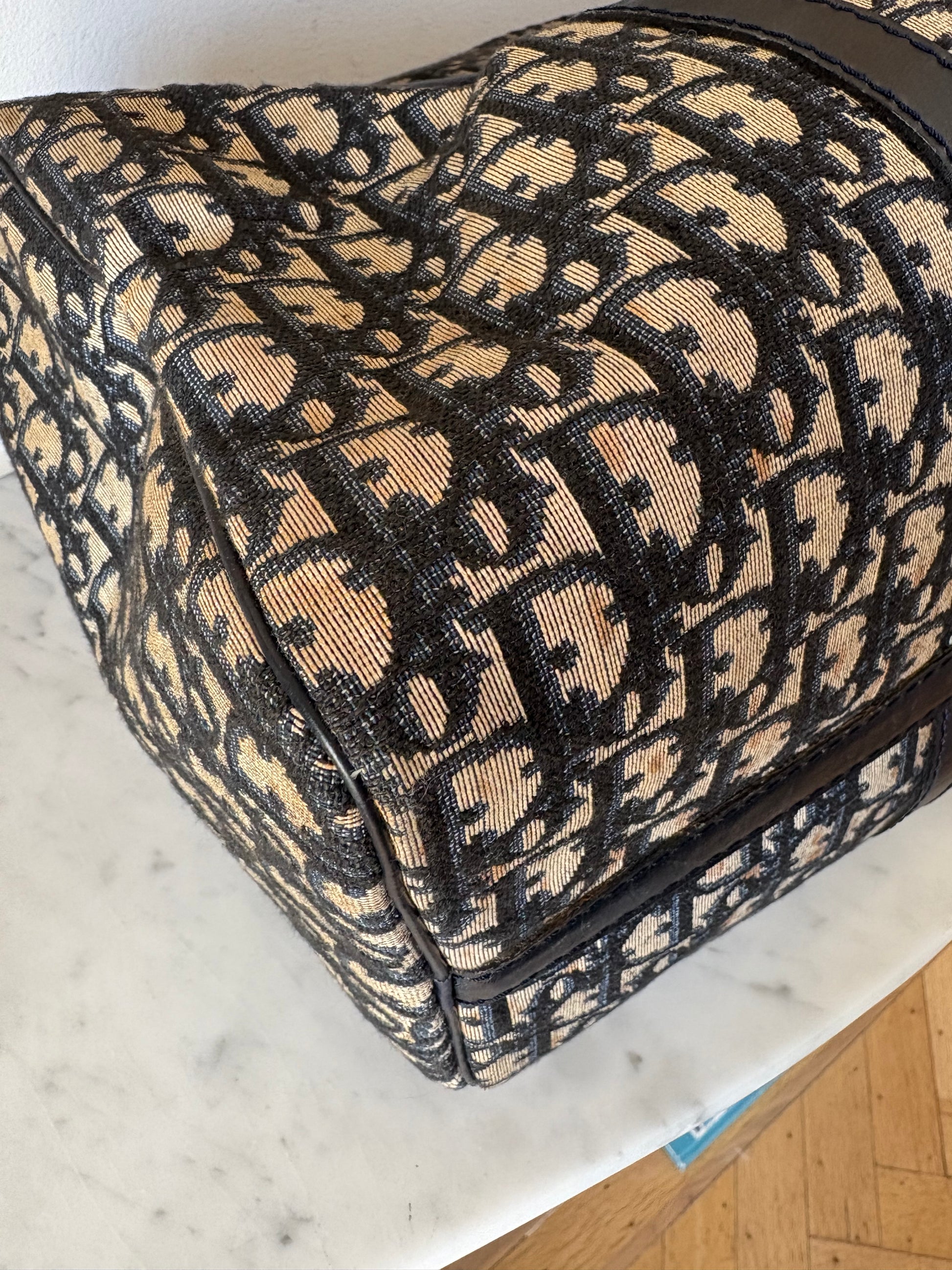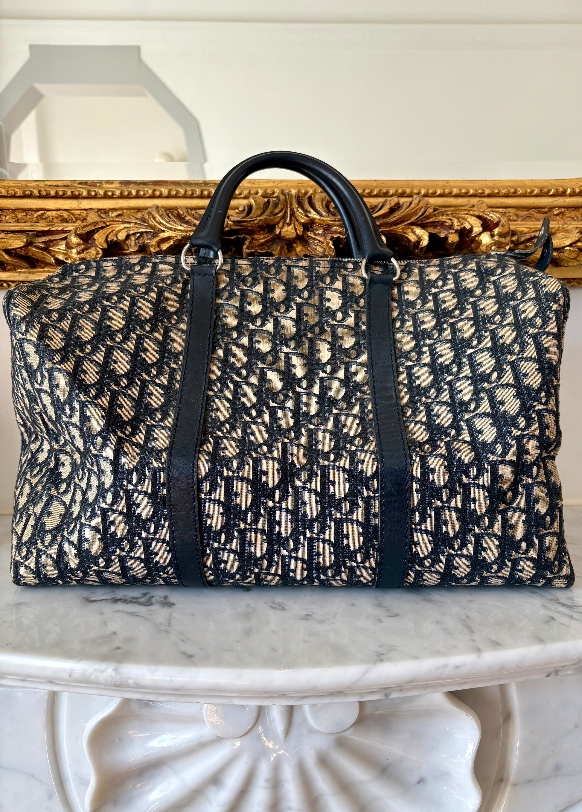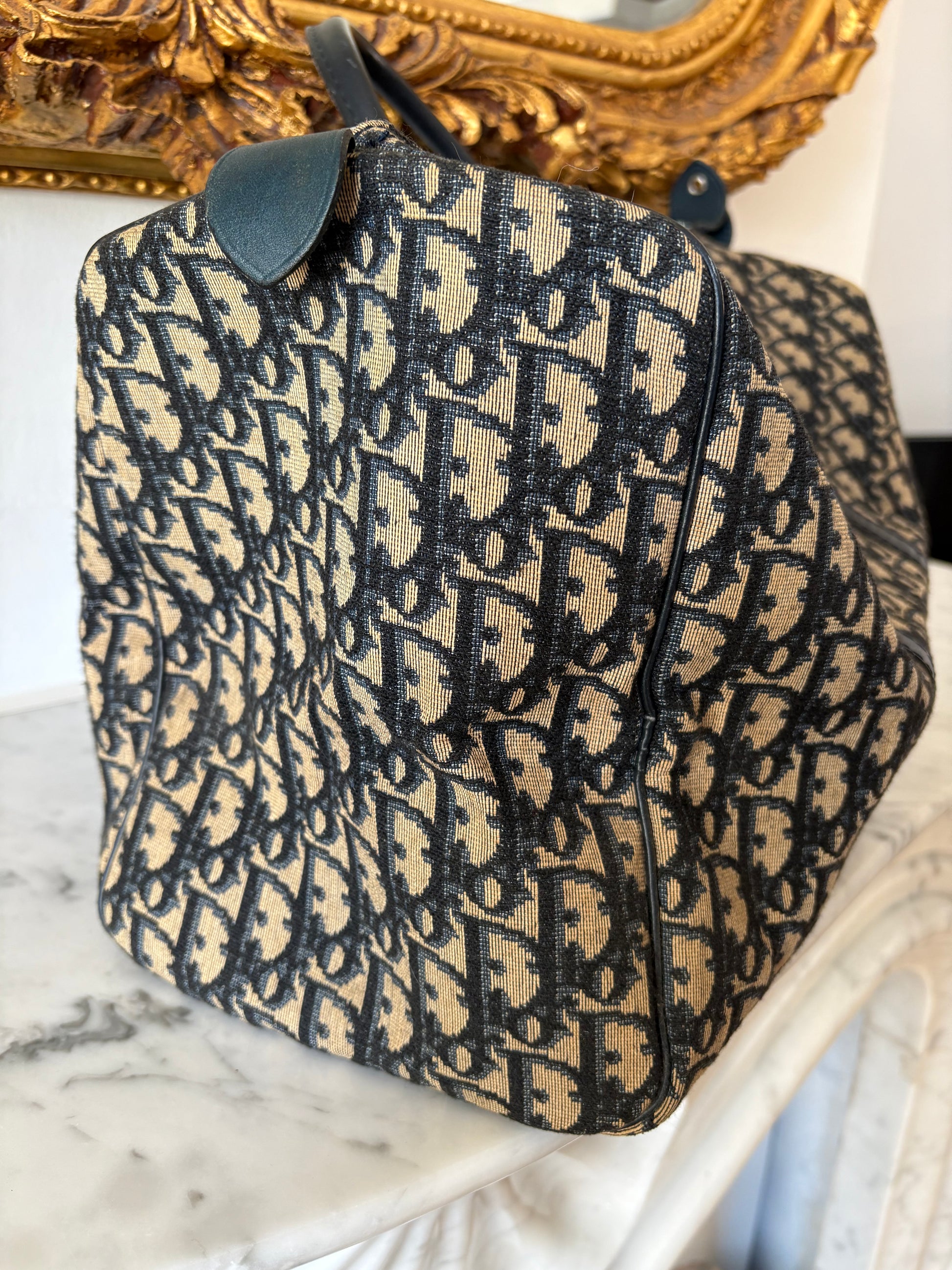 Classic Dior Boston in navy blue monogram canvas, finished with leather.