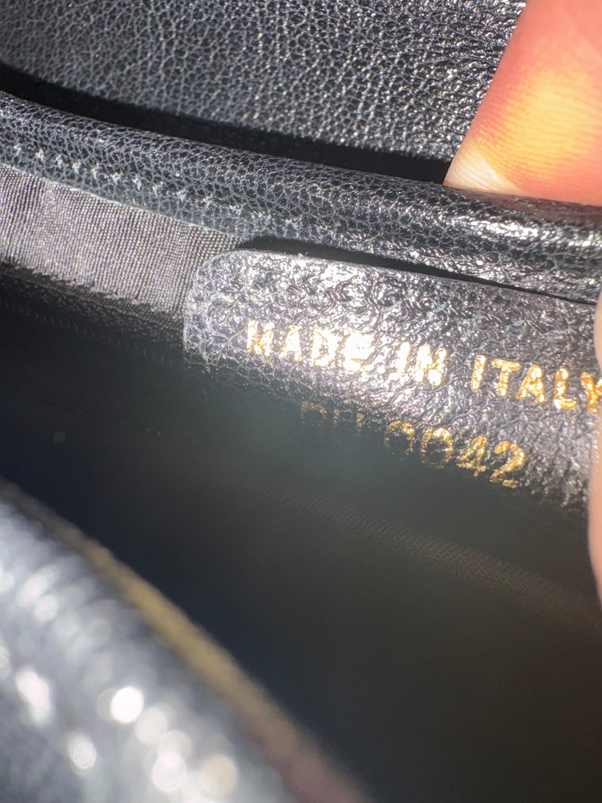 This black beauty comes in smooth calf leather, very durable, and has shiny gold hardware.