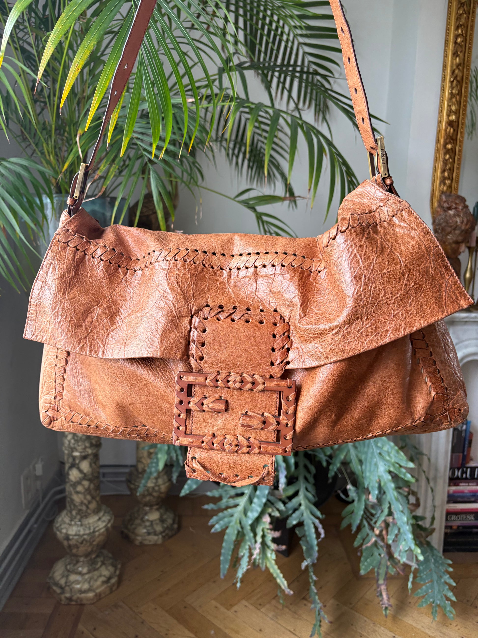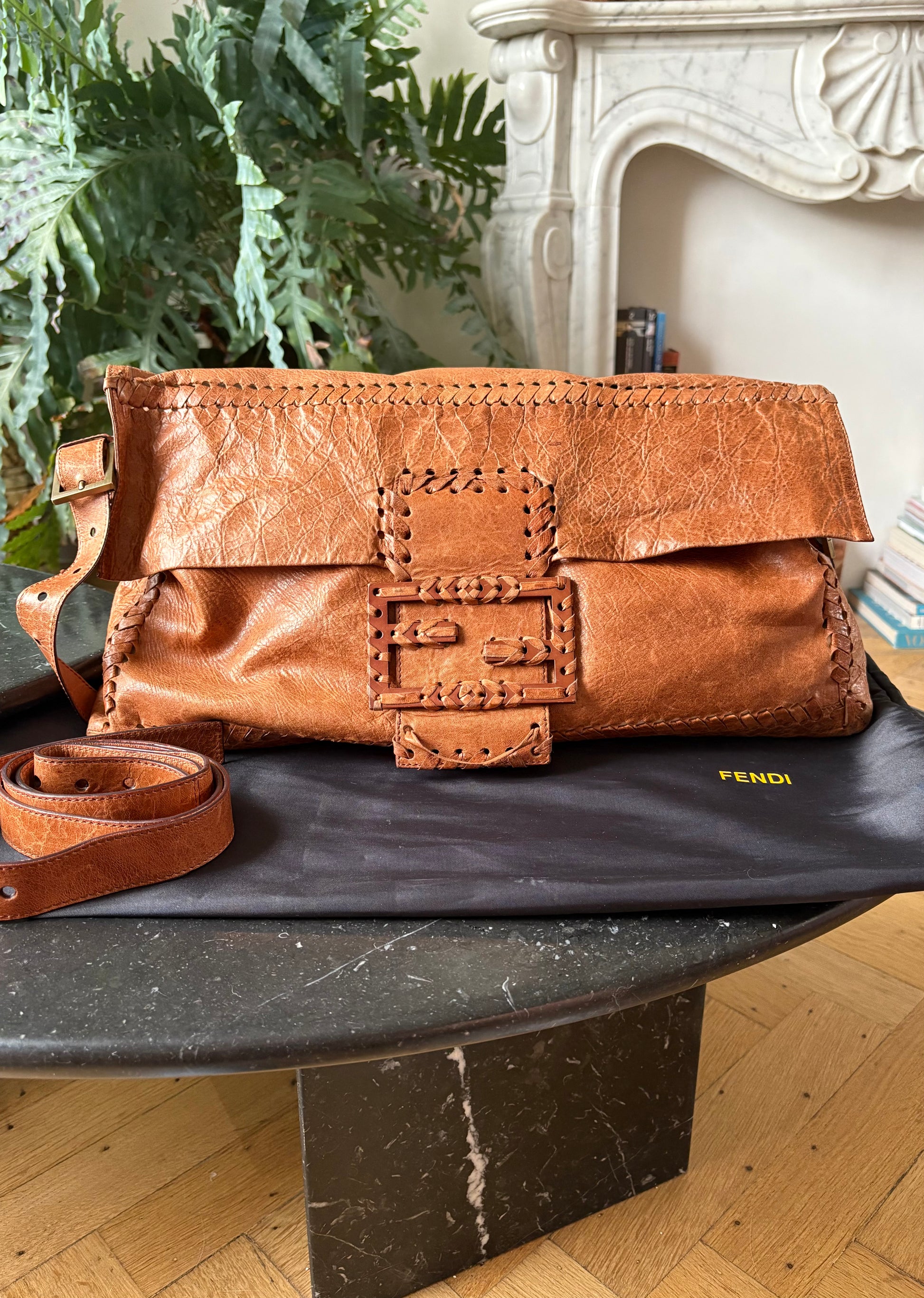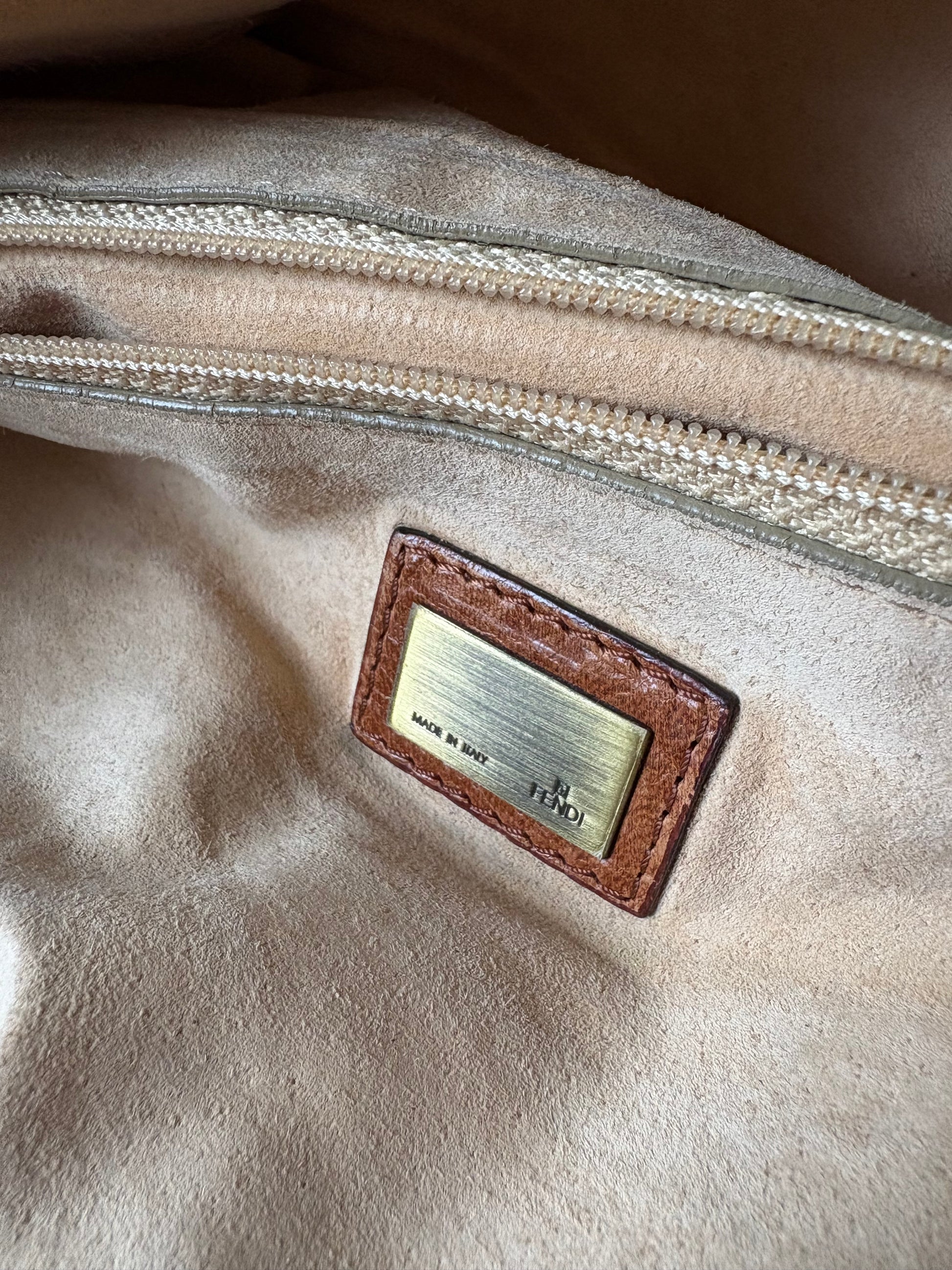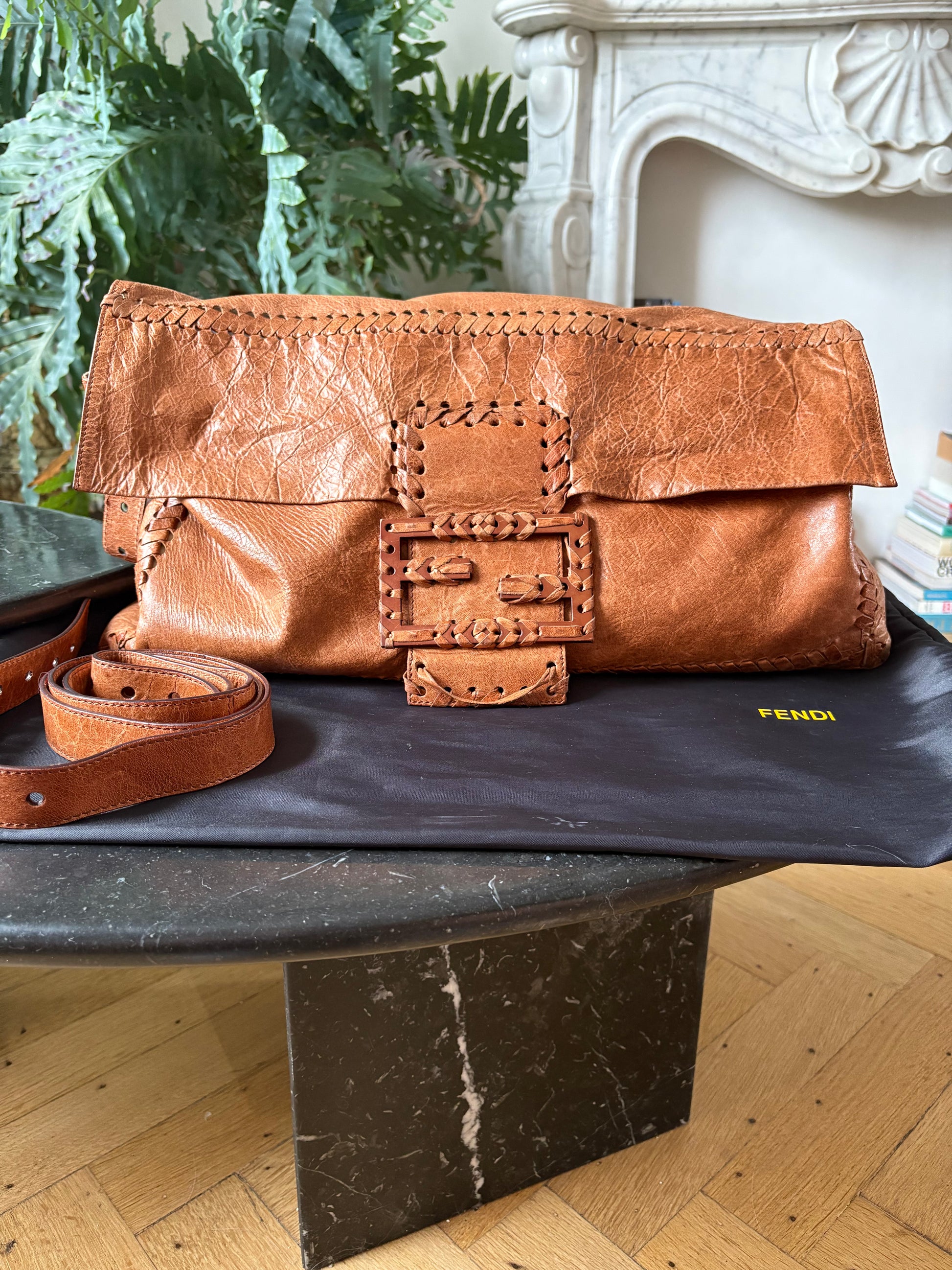 This super cool Fendi Baguette is huge, but still very practical. It is made out of soft & slouchy, camel coloured calf leather.