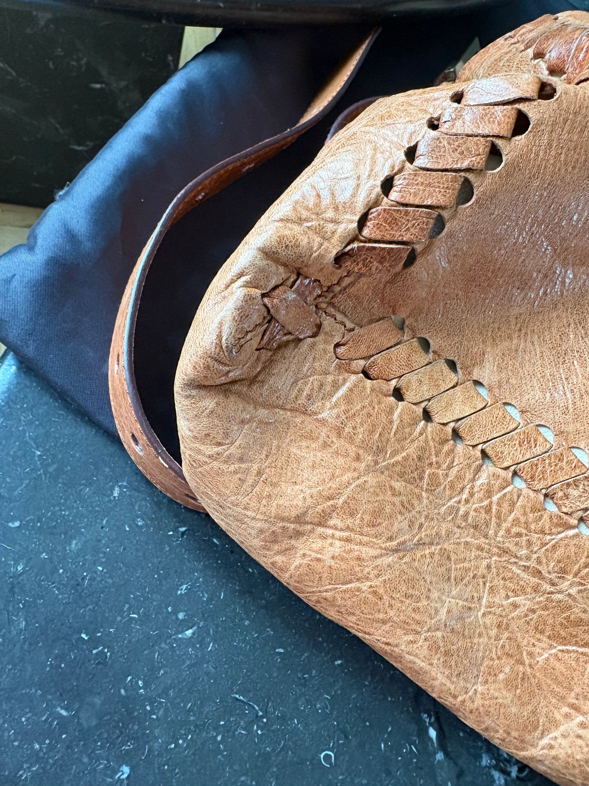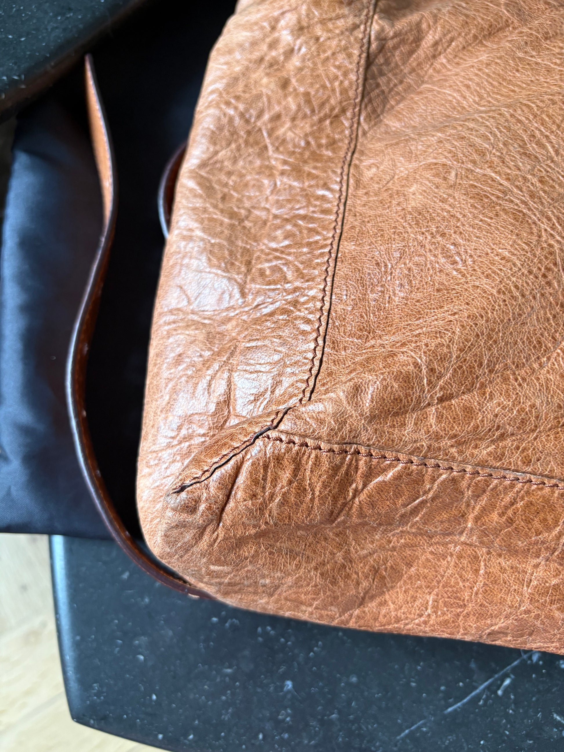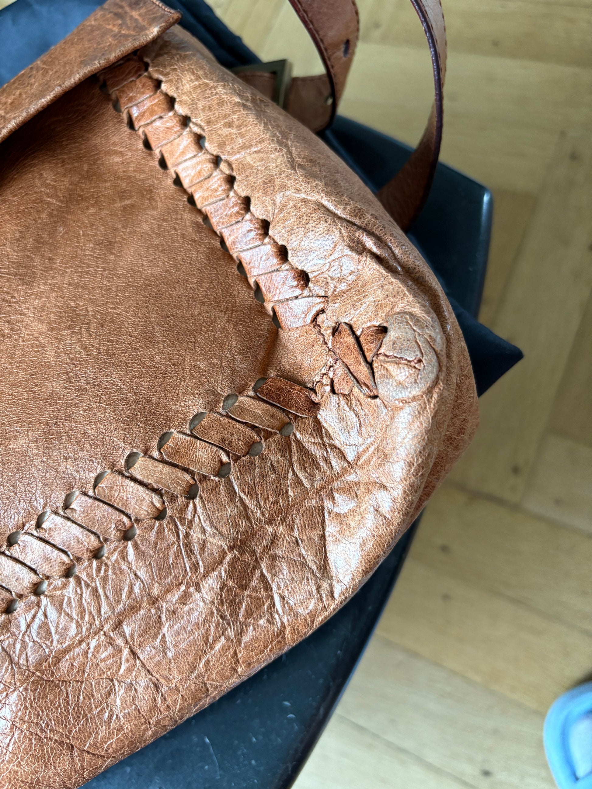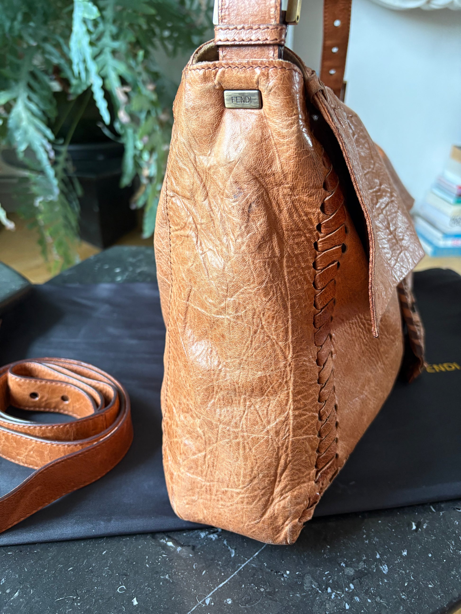 This super cool Fendi Baguette is huge, but still very practical. It is made out of soft & slouchy, camel coloured calf leather.