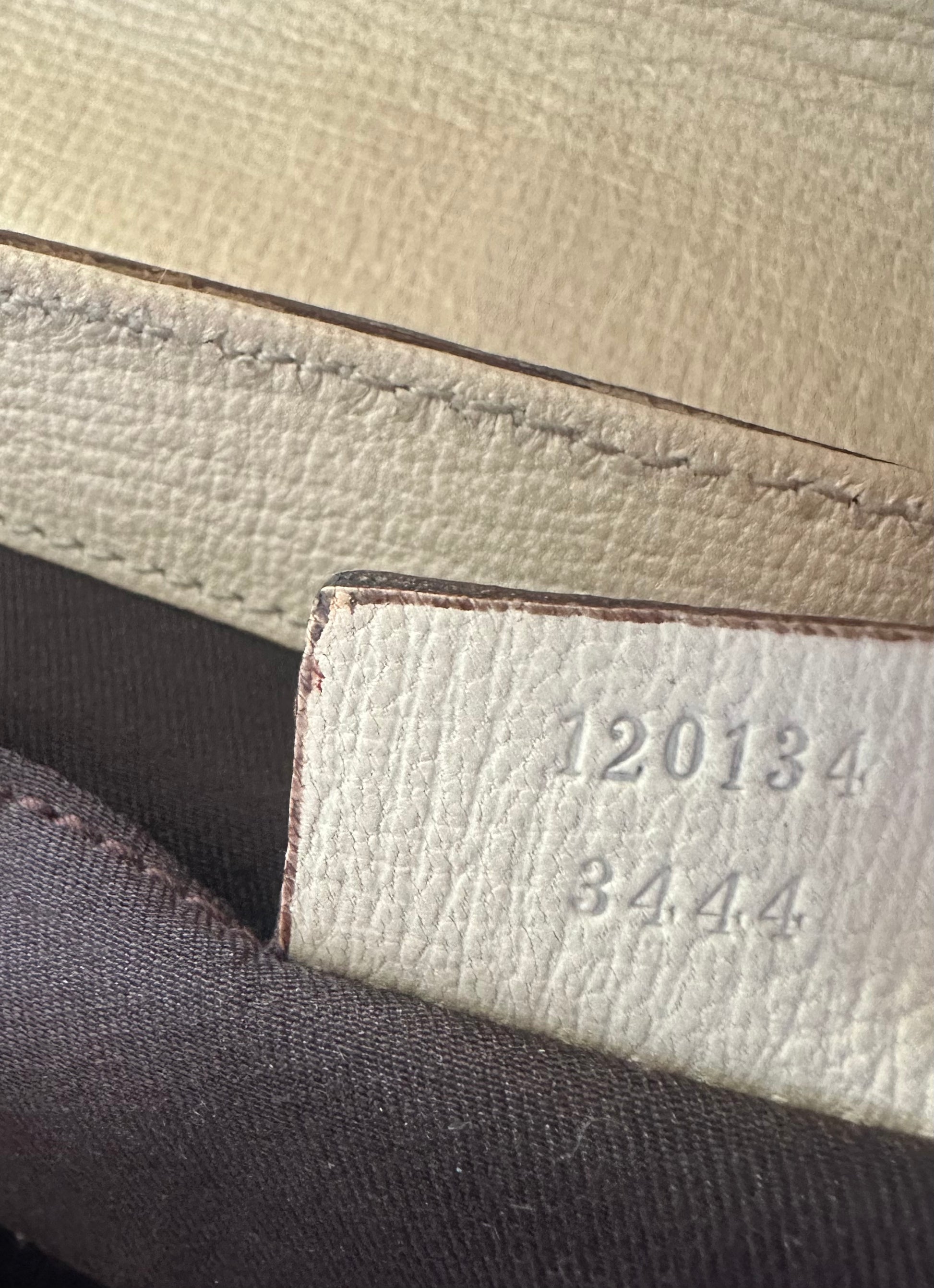 This baby is made of leather and features gold hardware (unlike the re-editions of this bag, which only come with silver). It’s the large size of this bag.