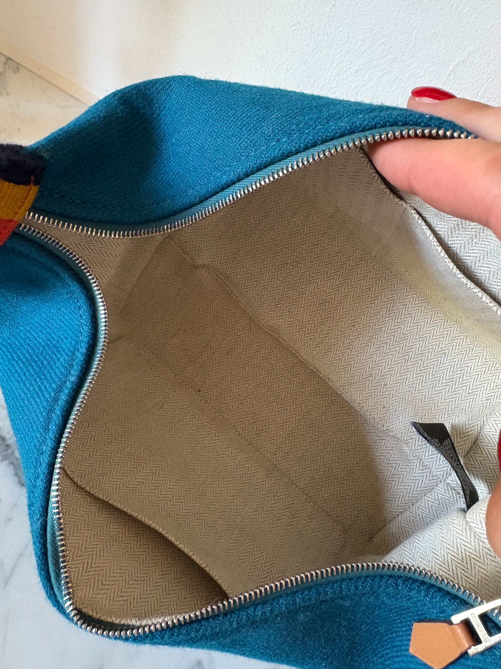 This wool pouch can be used as a handbag, cosmetic bag, small beach bag, to name just a few options.