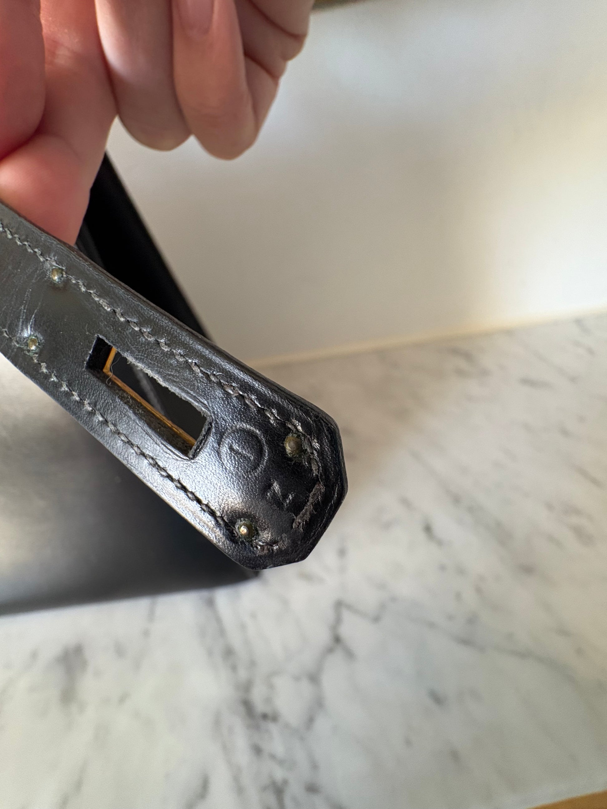This dream bag is from 1979, and she is in very good condition for her age. The structure is immaculate, very solid, and the leather is hydrated and without any cracks whatsoever. The strap, however, does show some minor cracking. There are scratches on both leather and hardware, as expected from a vintage bag.