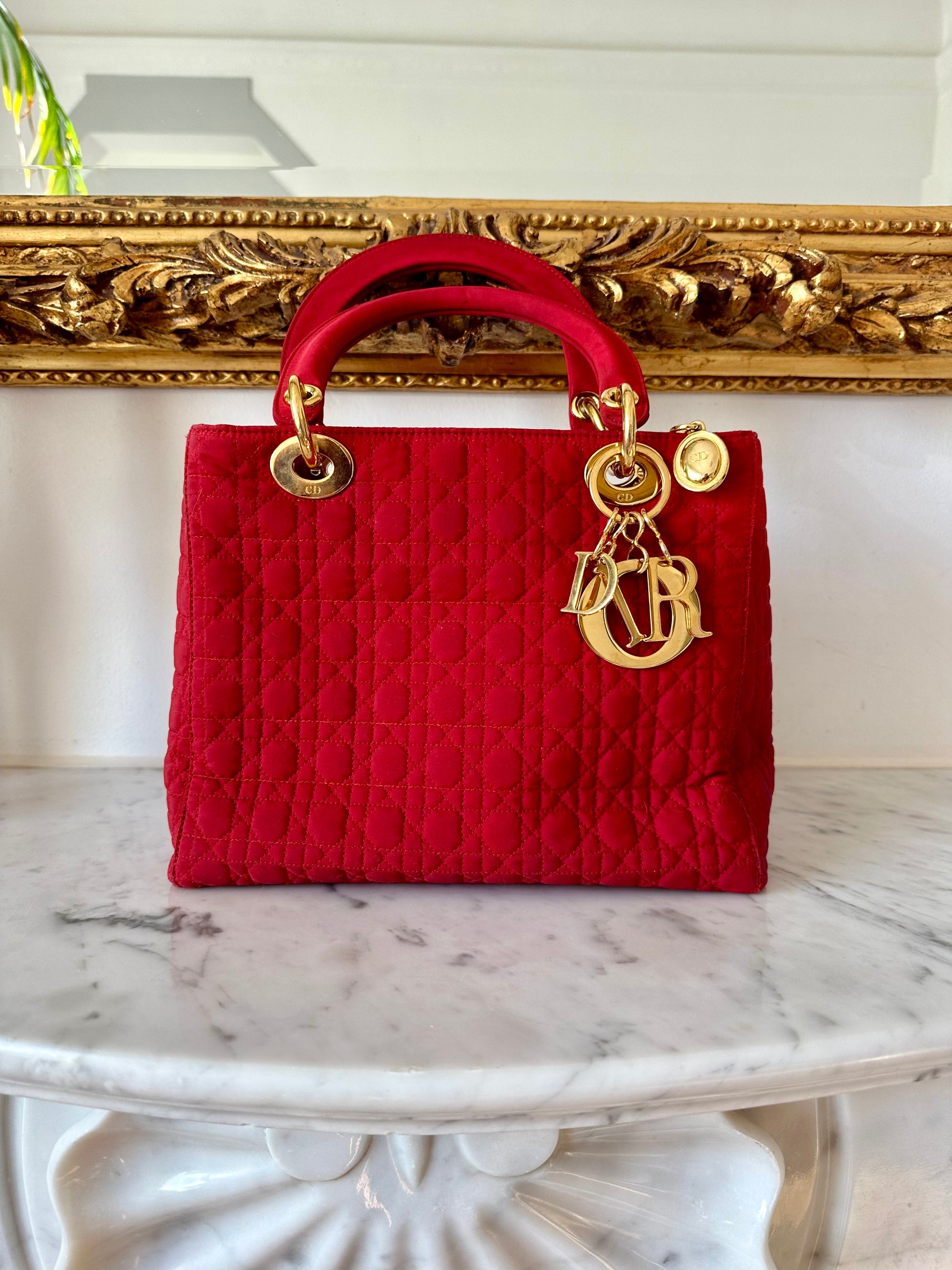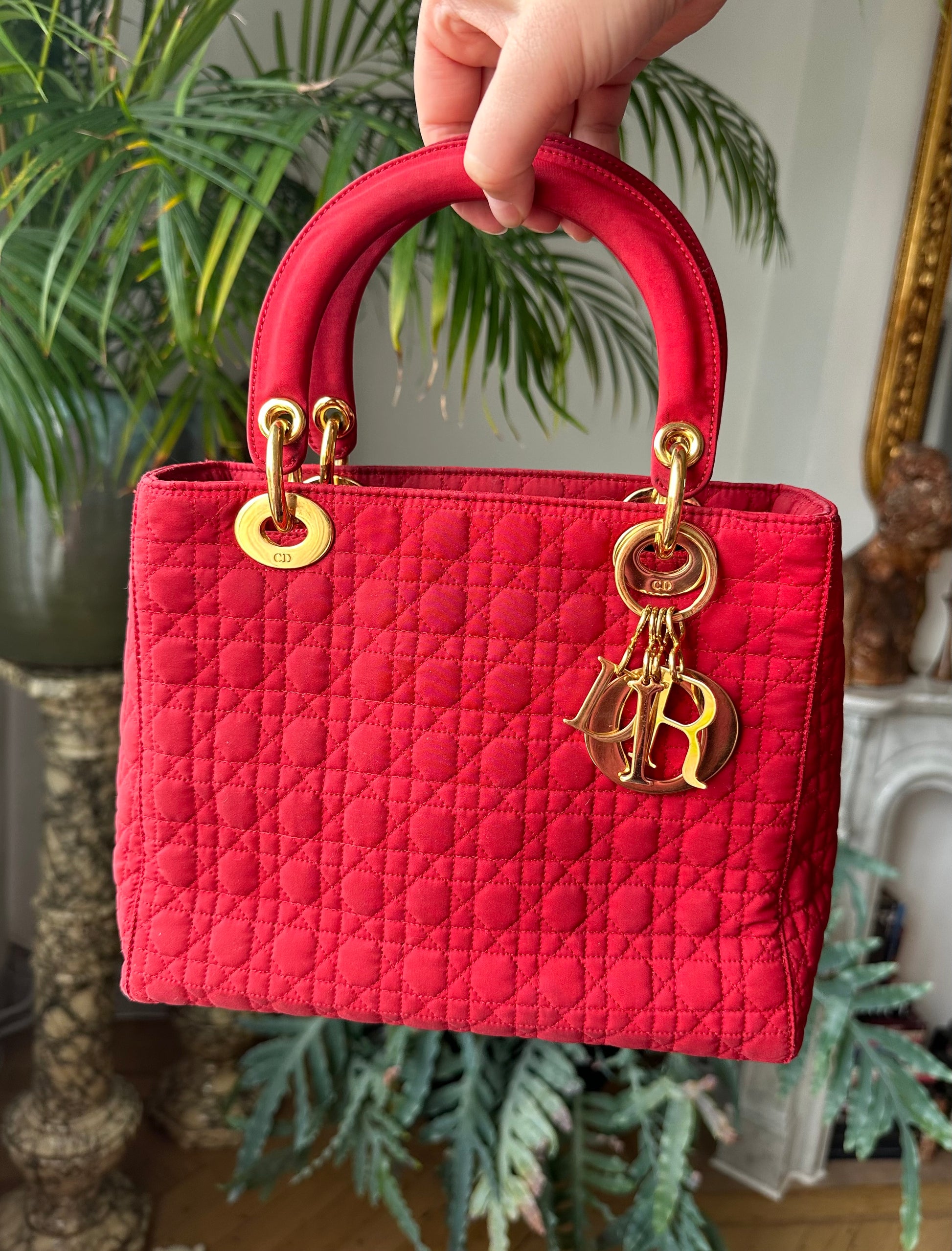 This vintage Lady Dior in size medium is everyone’s favourite Dior bag, and this time in a very rare cherry red colour.
