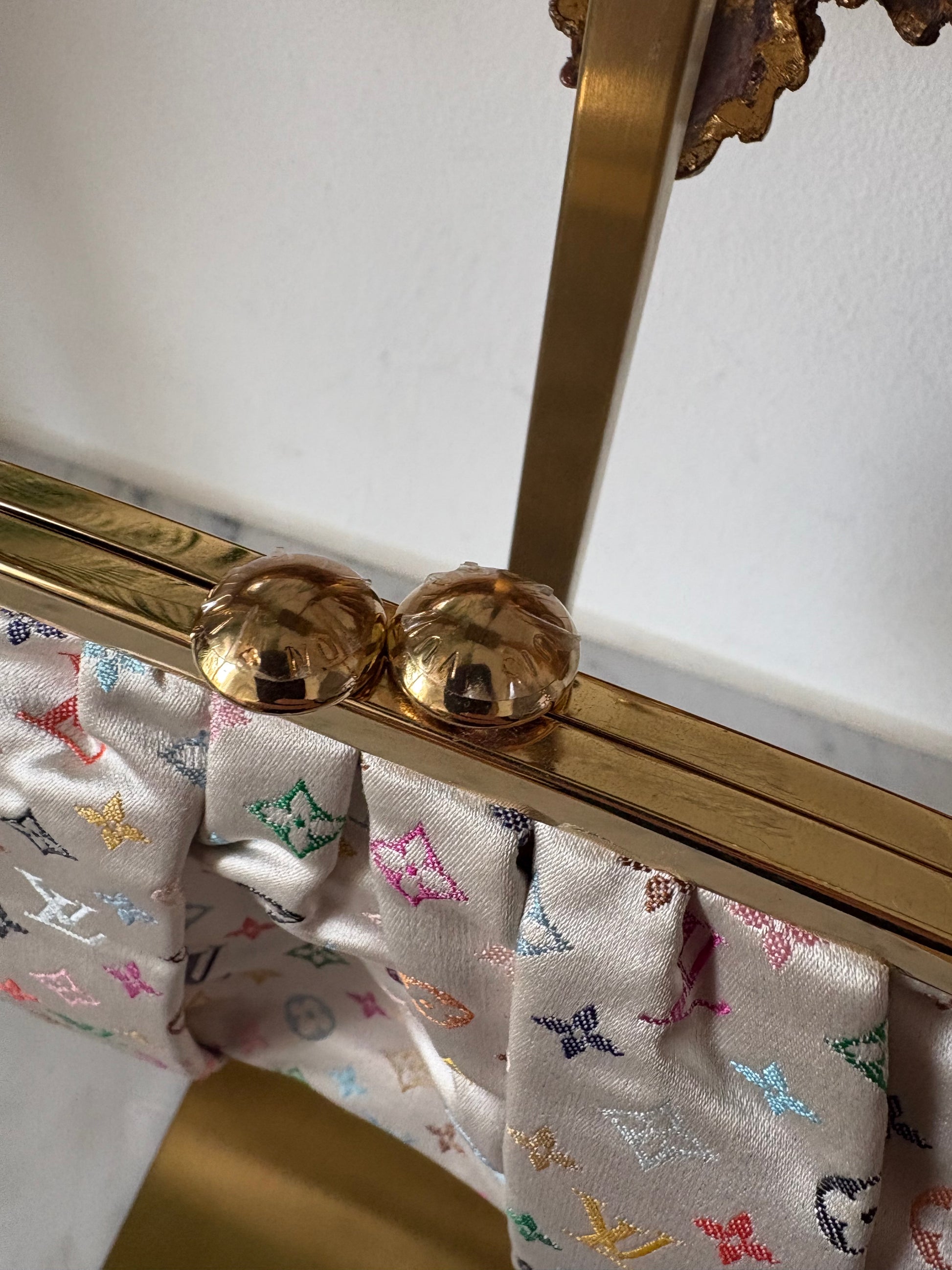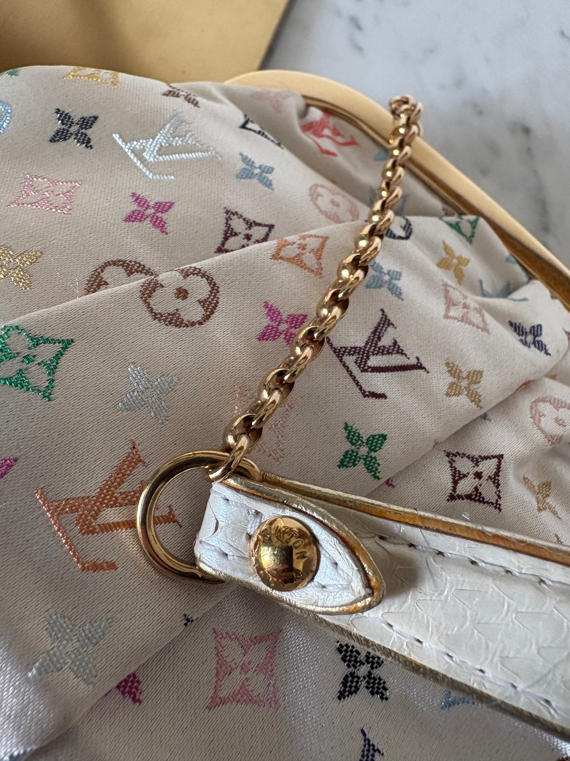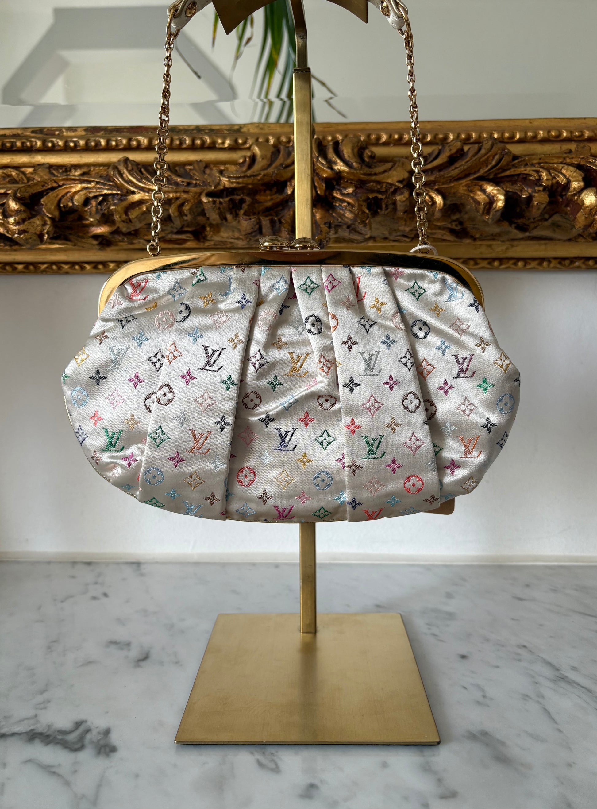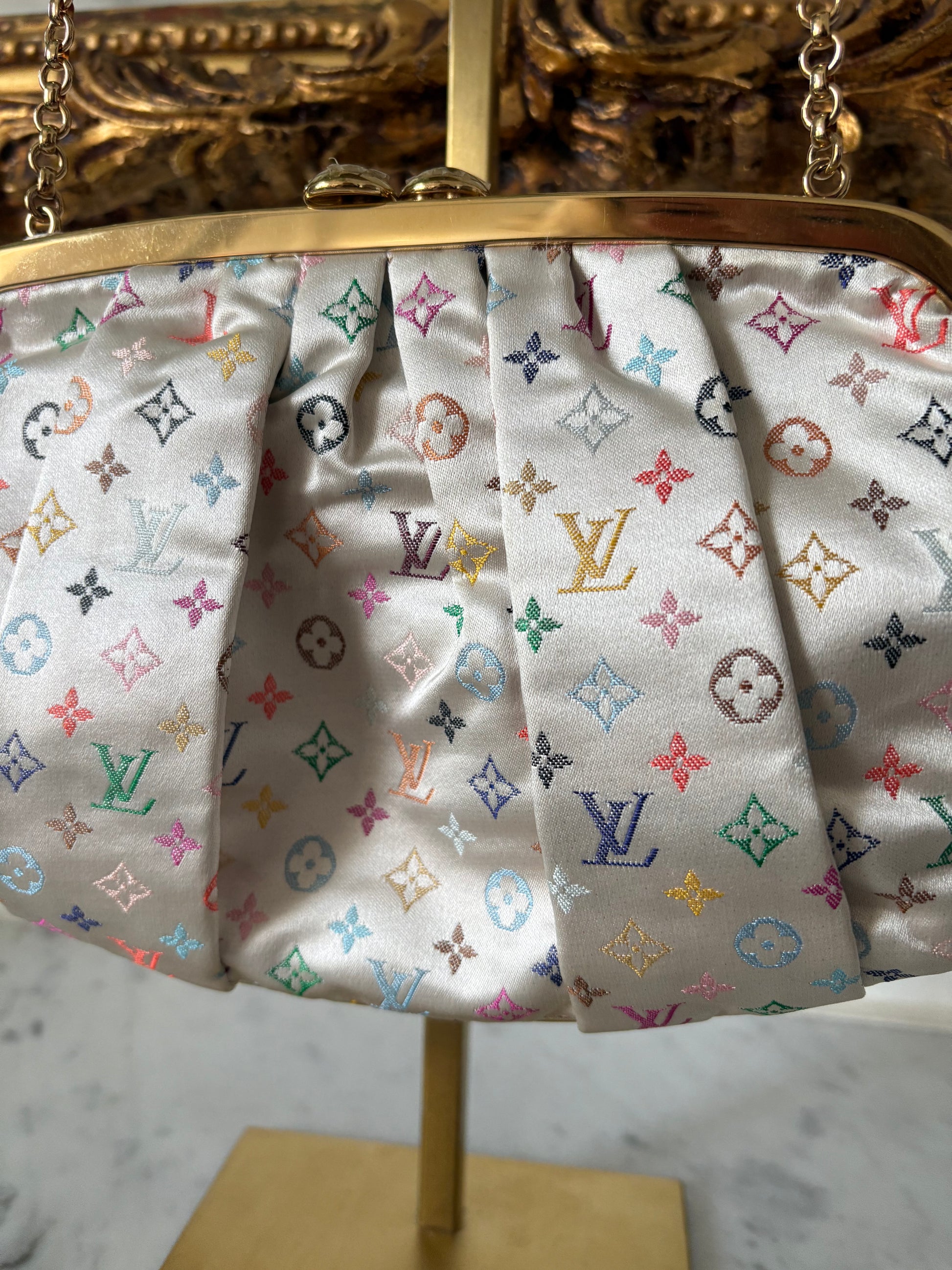 Adorable and rare Louis Vuitton Aumoniere satin evening bag in Multicolor.