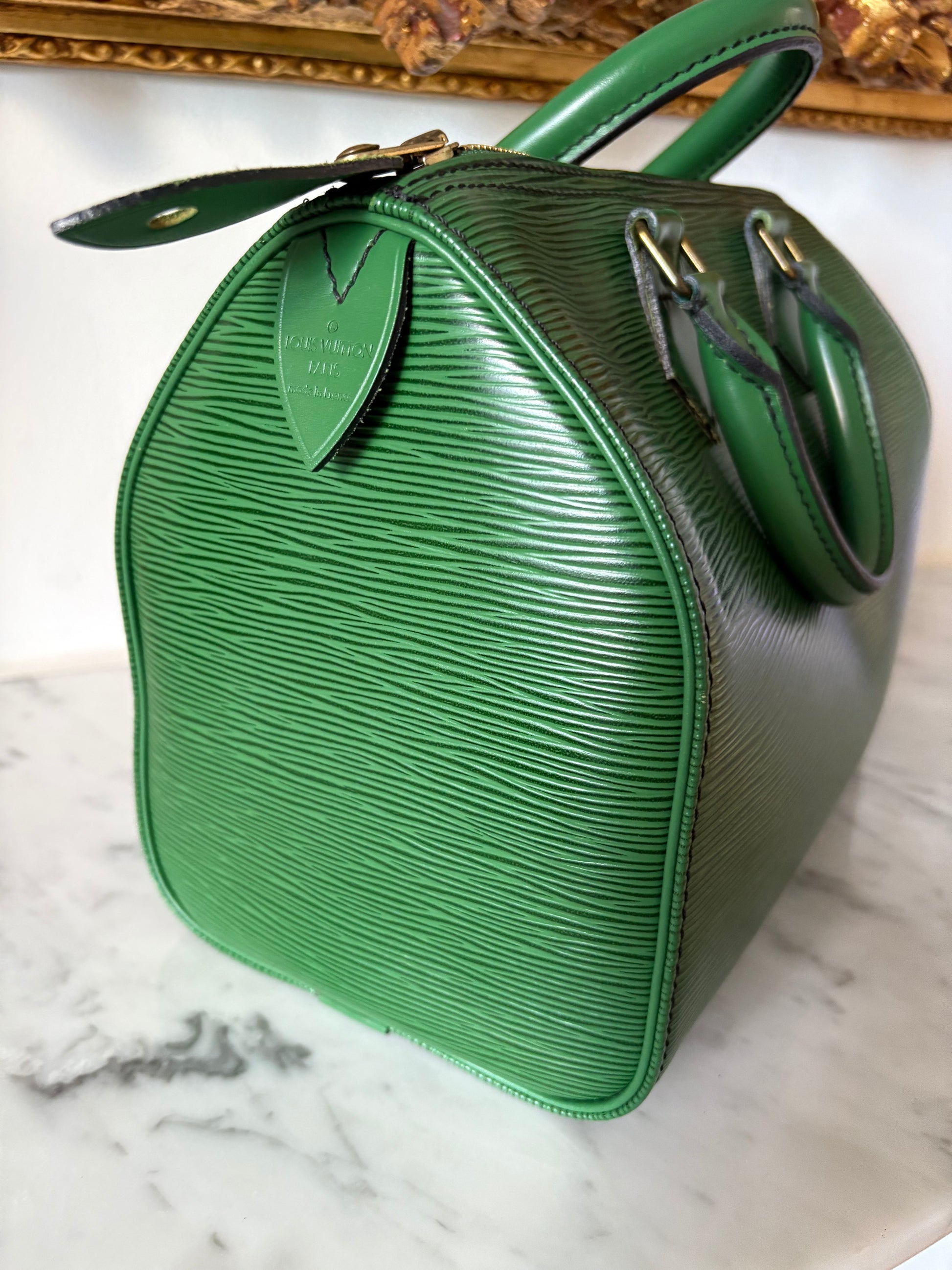 The infamous Speedy by Louis Vuitton, in adorable size 25 and in green Epi leather 💚