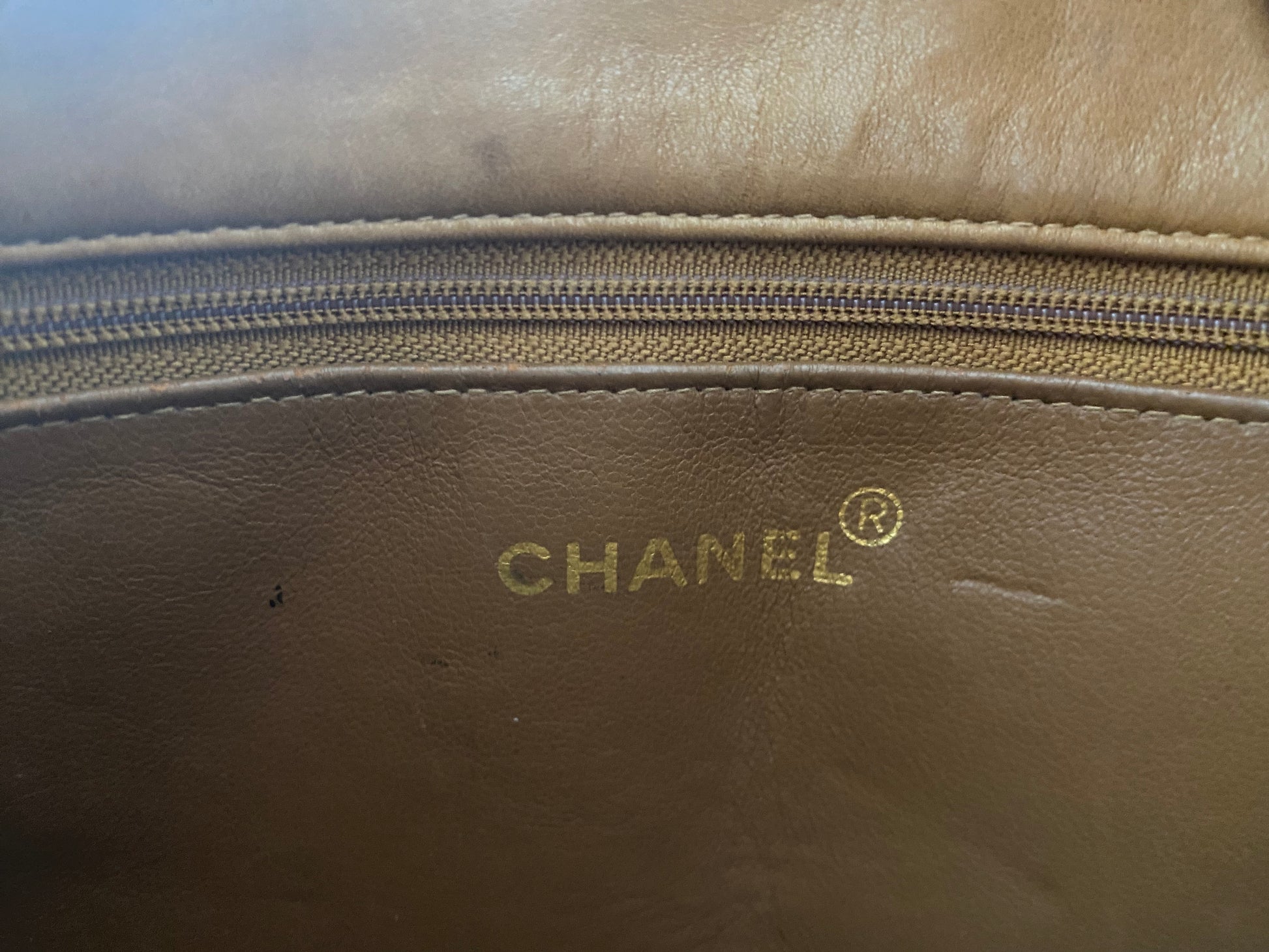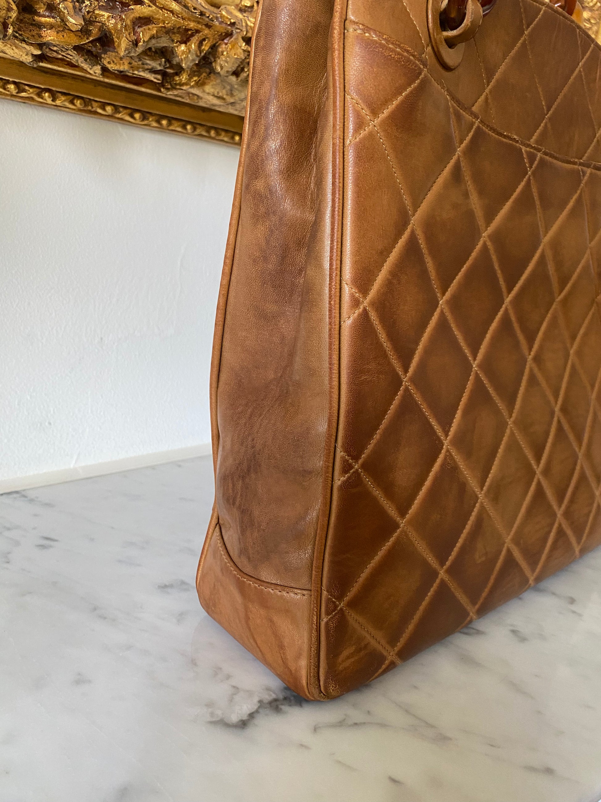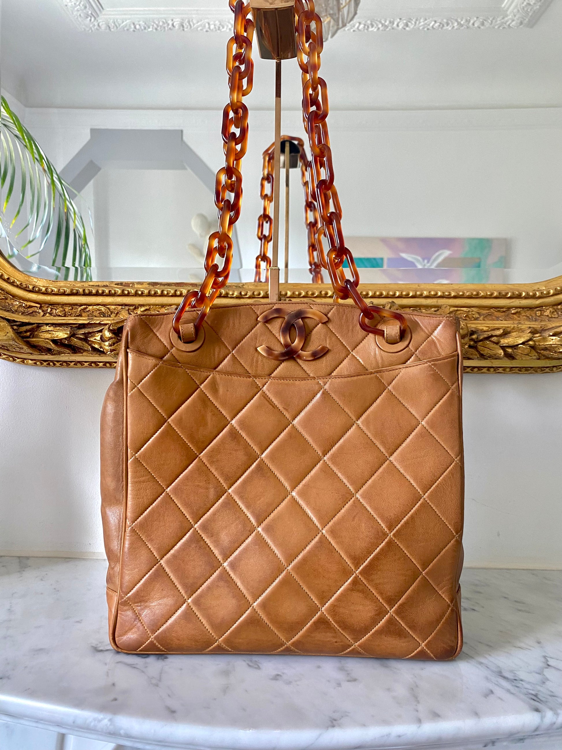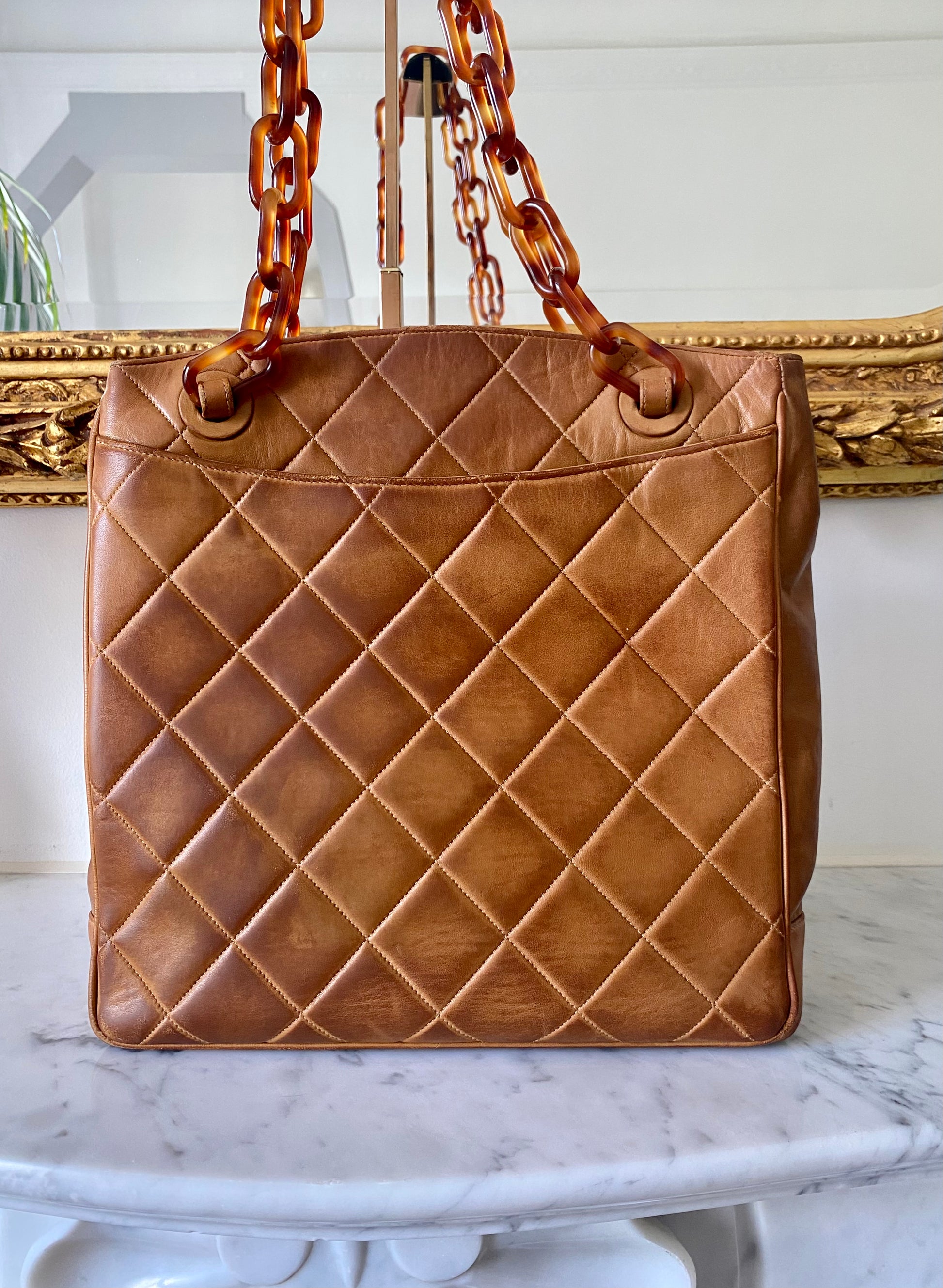 Beautiful Chanel tote in caramel beige lambskin leather and brown tortoise accents.